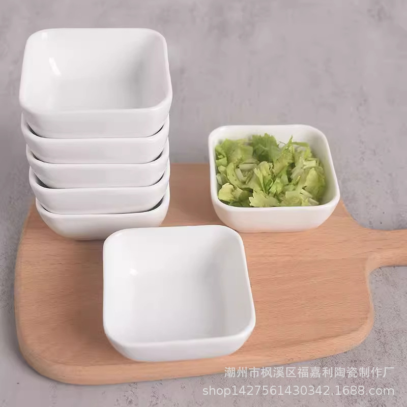 国境を越えたホテルのセラミック調味料ディッシュ、ディップディッシュ、アマゾンセラミックスクエアスナックディッシュ、和風ソースディッシュ