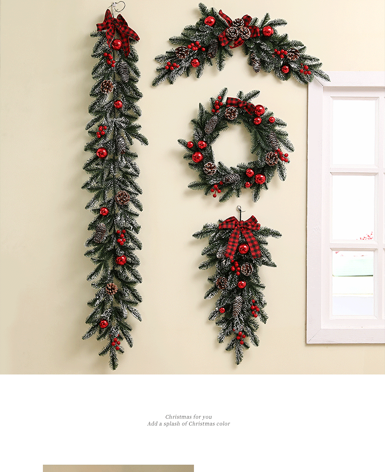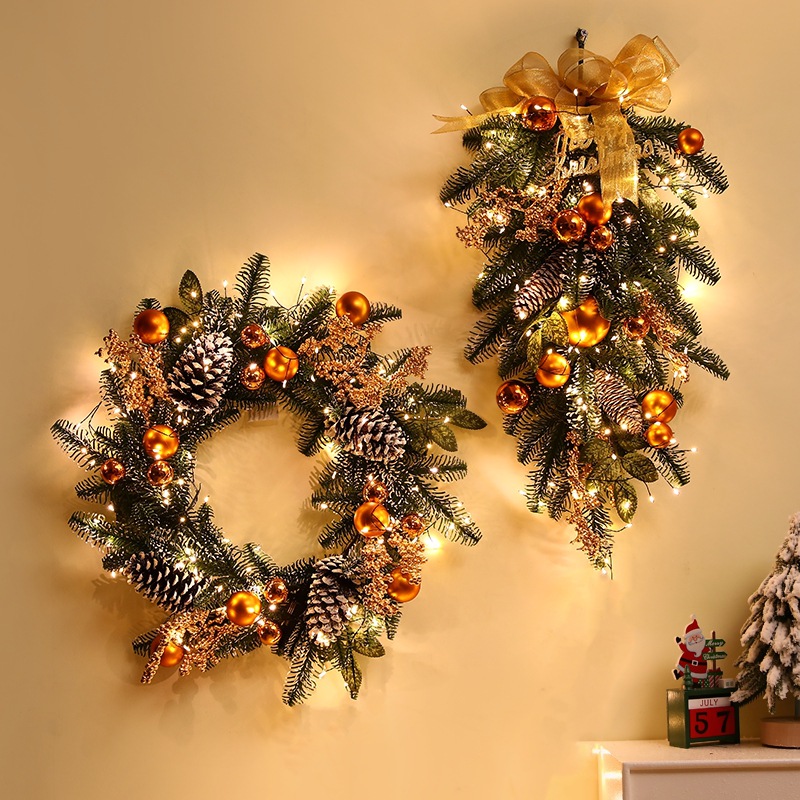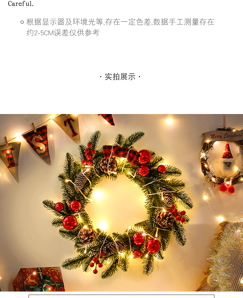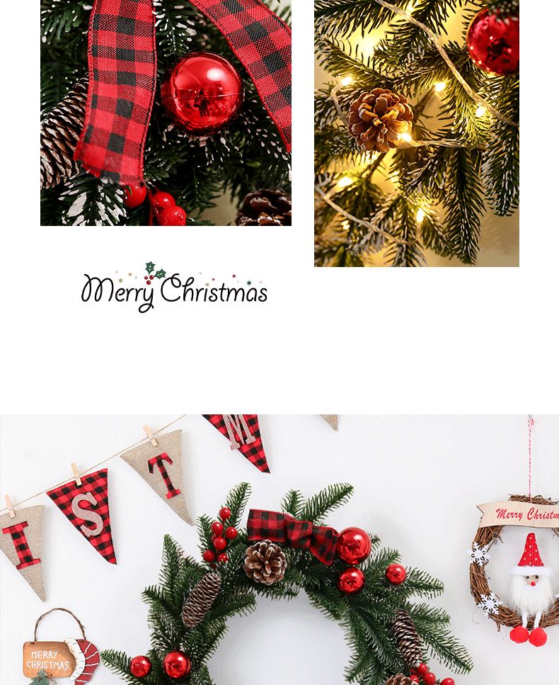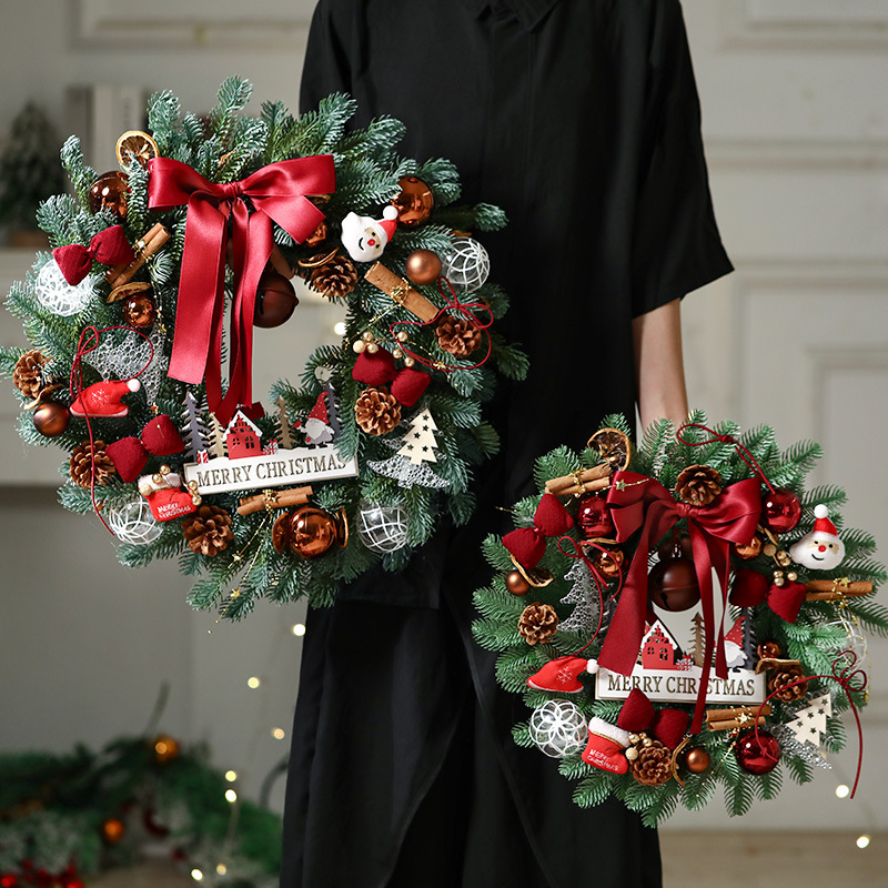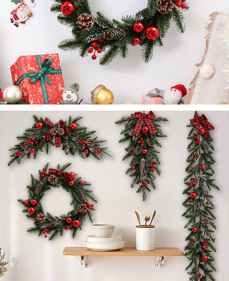 跨境亚马逊圣诞花环40/50/60cm圣诞节装饰品礼物挂饰场景布置门挂