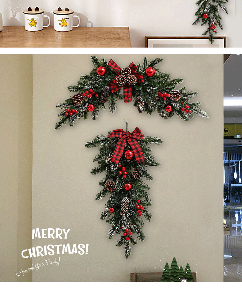 跨境圣诞装饰门挂落雪圣诞节装饰藤条摆件装饰品挂件商场场景布置