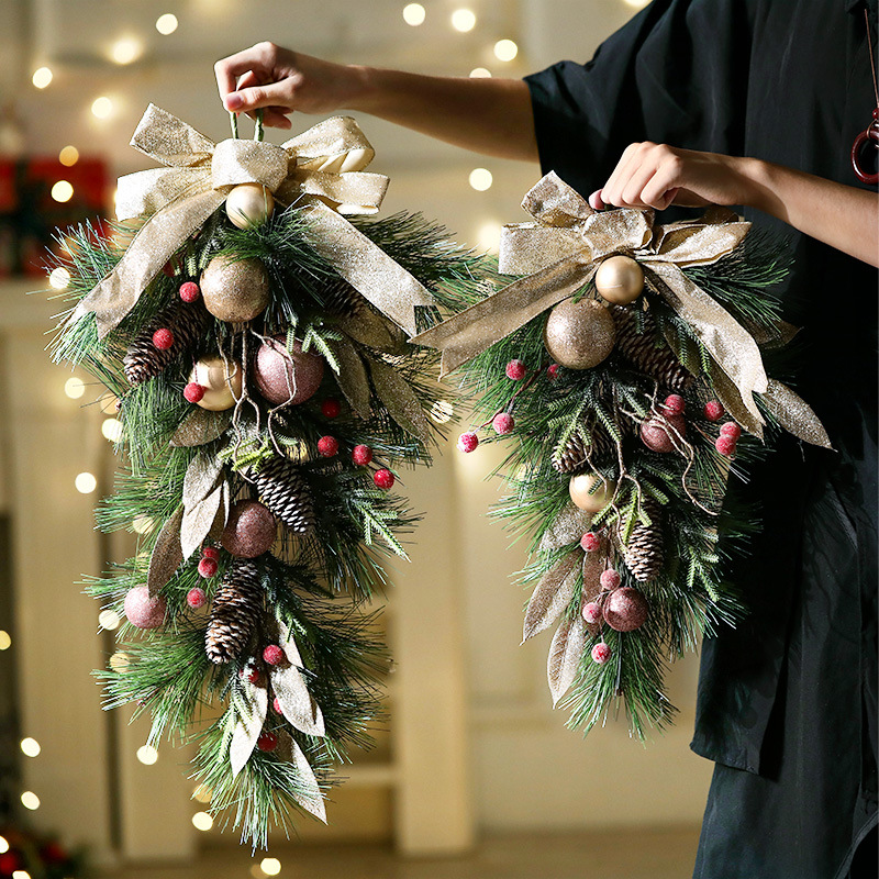 圣诞挂件热销圣诞节装饰50cm花环倒挂酒店橱窗商场场景门挂布置品