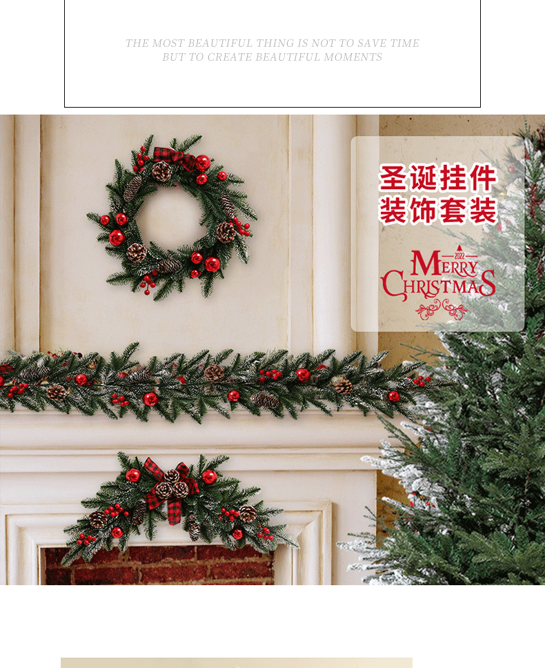 跨境亚马逊圣诞节装饰品花环藤条门挂饰场景布置圣诞树挂件吊饰