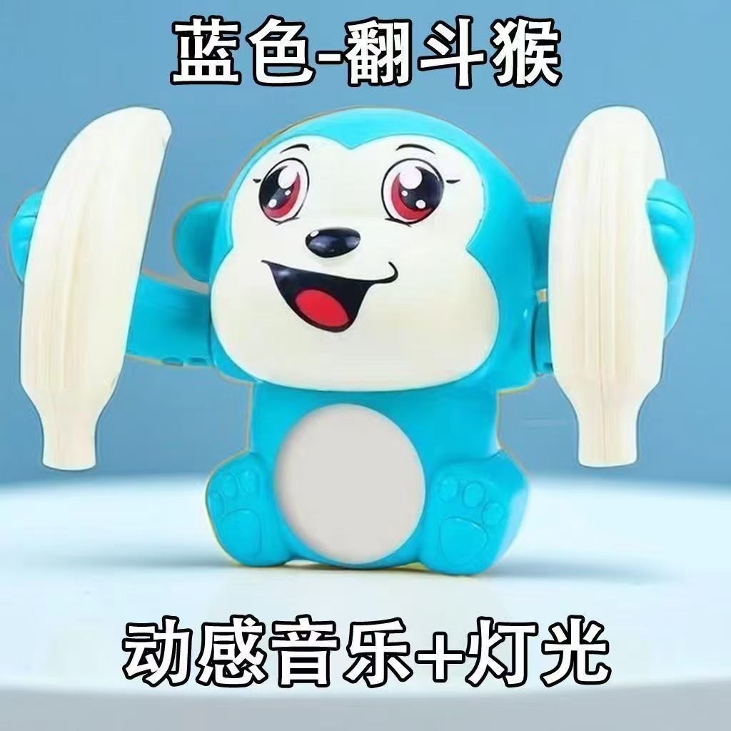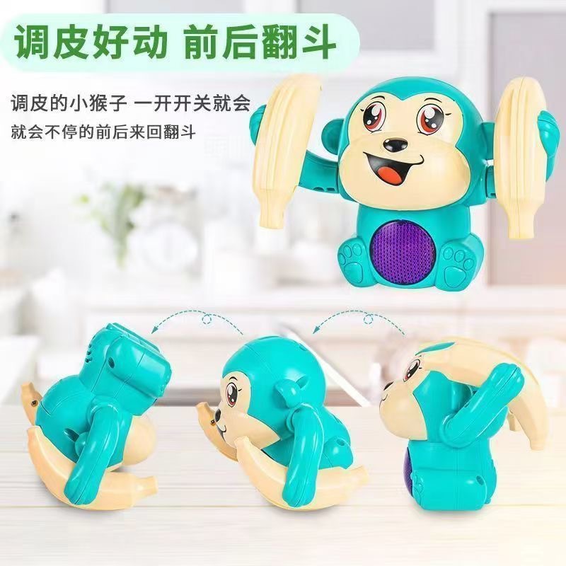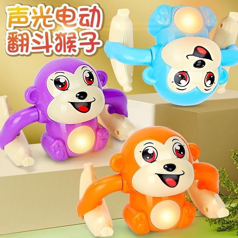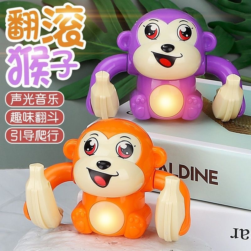 子供の電動の転がる猿のおもちゃは早く照明の音楽を教えます。