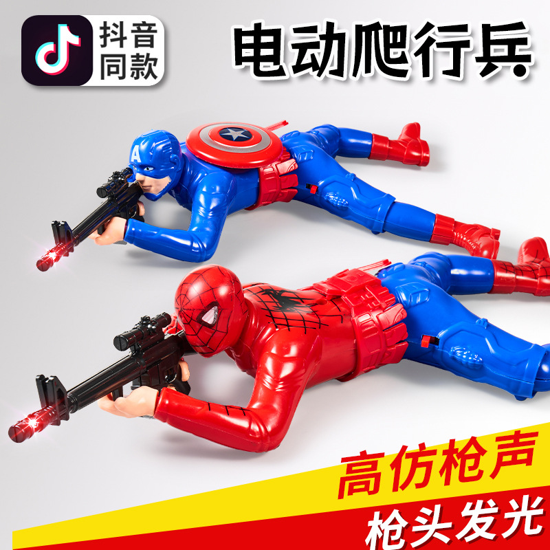 电动爬行兵玩具蜘蛛侠新款吃鸡美国队长带灯光有声乐仿真电动玩具