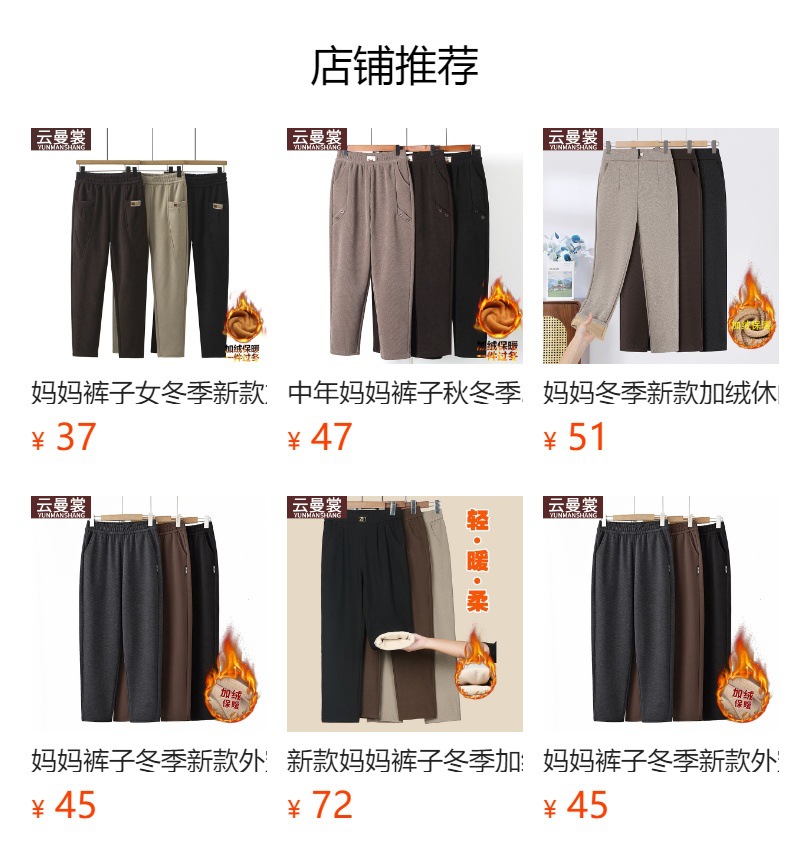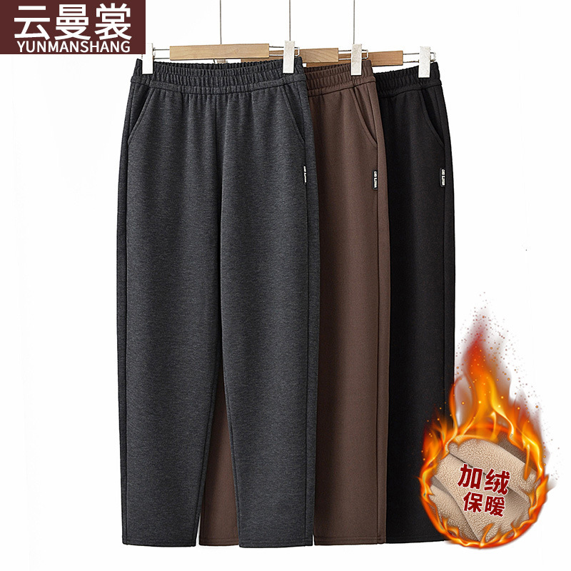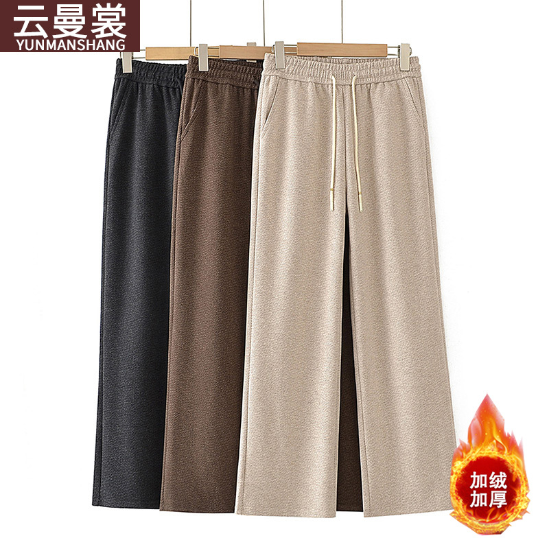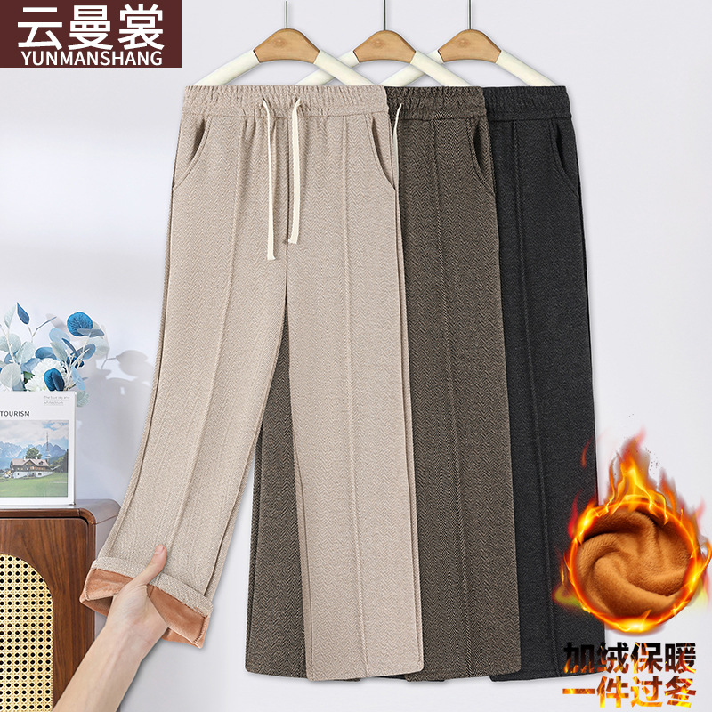 中老年女装直筒裤子秋冬新款松紧腰加绒加厚宽松大码妈妈装长裤子