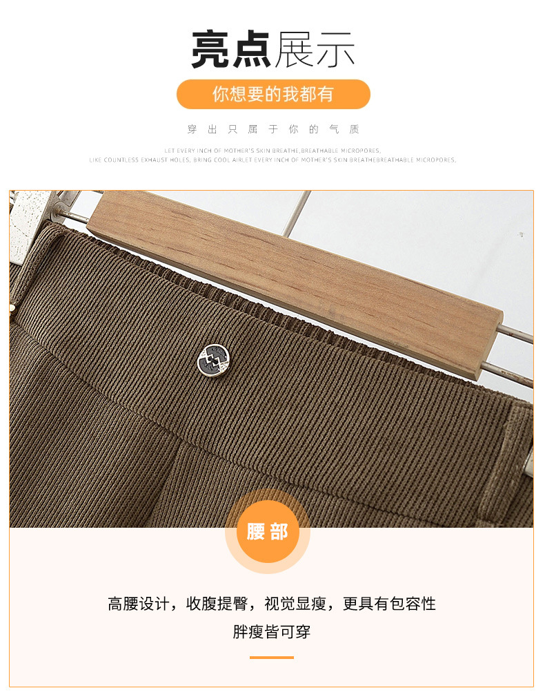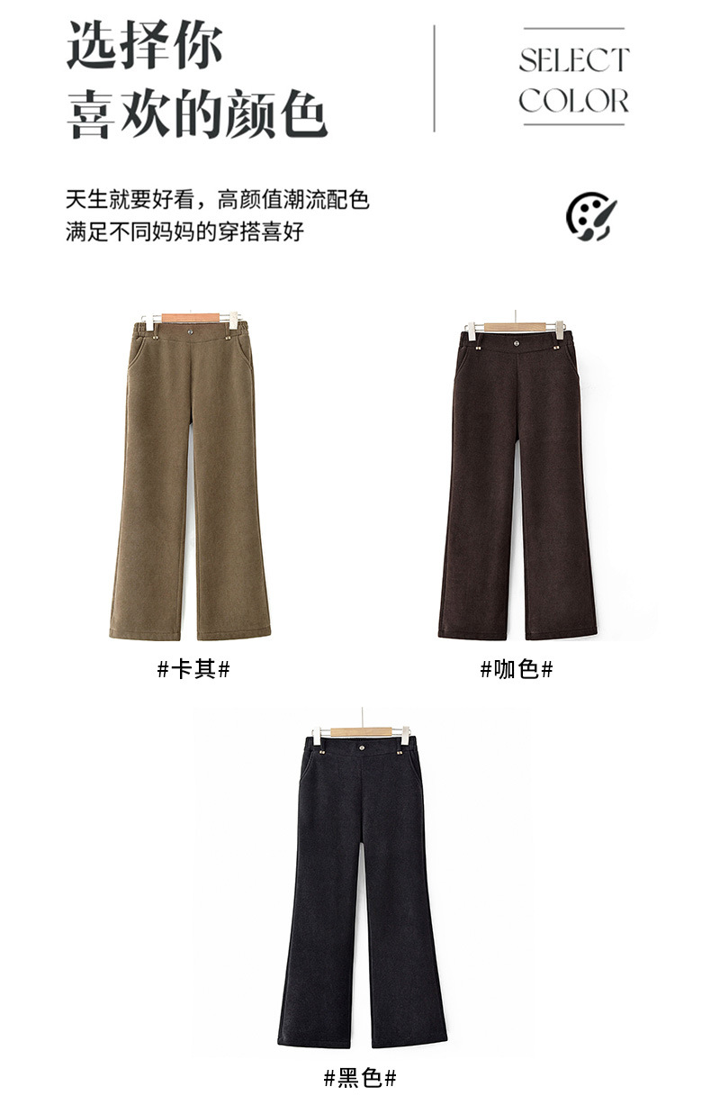 お母さんのベロアのズボンは秋冬にベルベットして、ゆったりとした洋風の高い腰を厚くします。