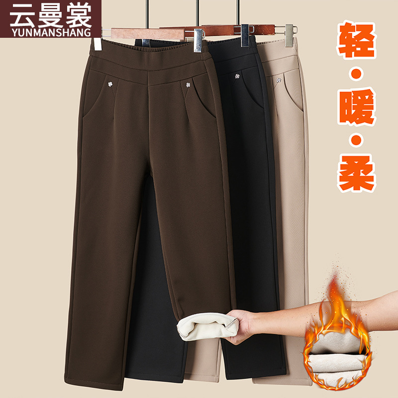 妈妈加绒裤子冬装2025新款洋气中老年女装加绒加厚保暖休闲直筒裤