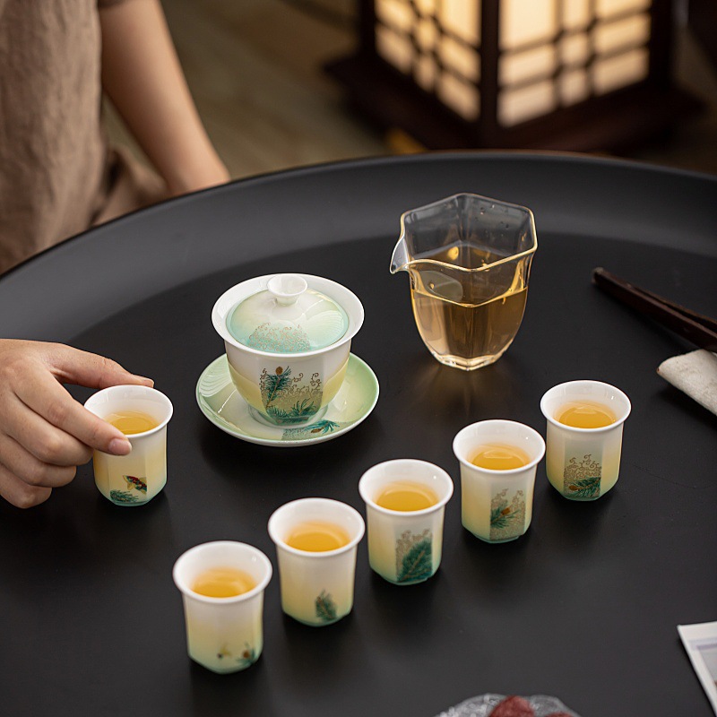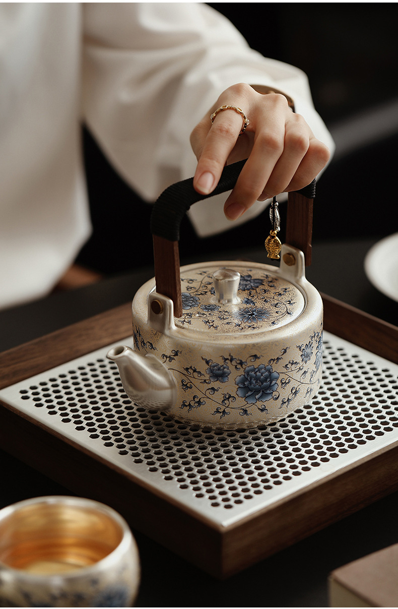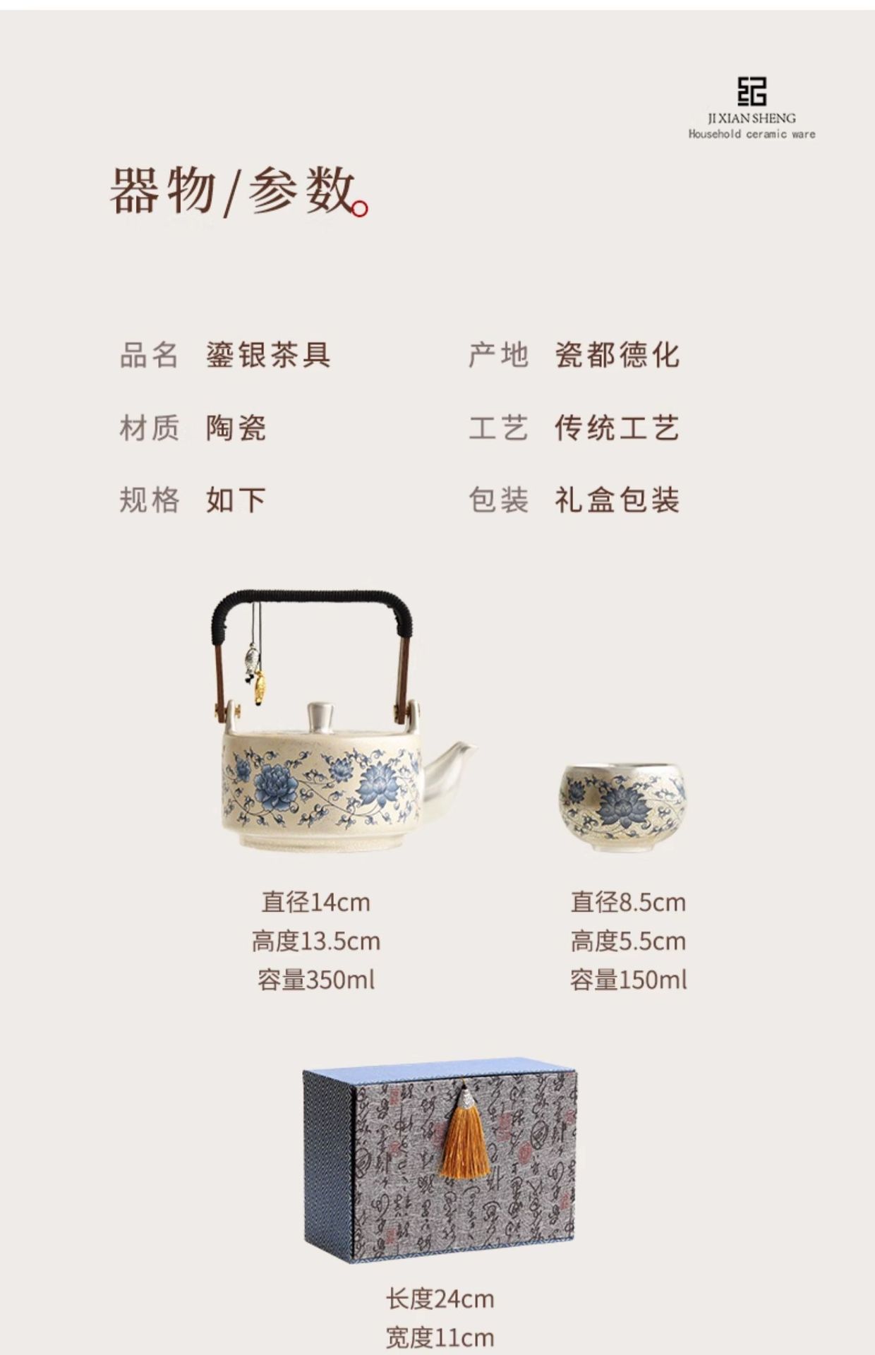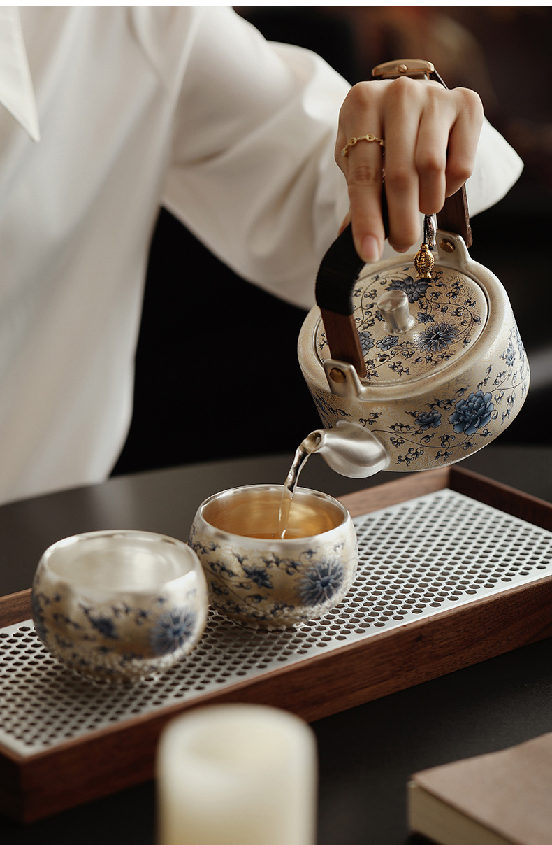 -(ゴールド)金銀巻き蓮ティーポット、ポット1個、カップ2個(ギフトボックス)