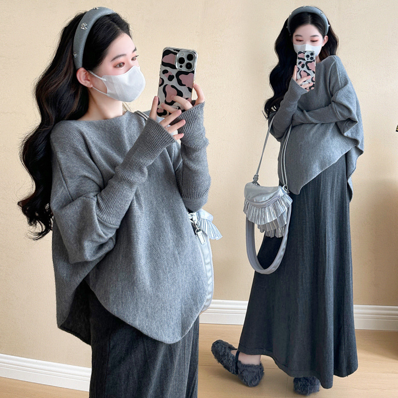 2025秋冬新款慵懒风蝙蝠袖宽松针织毛衣无托腹半身裙显瘦孕妇套装