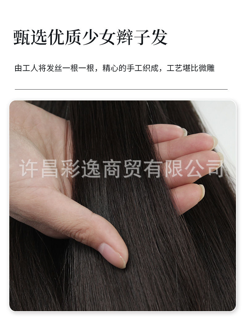 スイスネットのかつらの女性の頭の上で髪を補います。