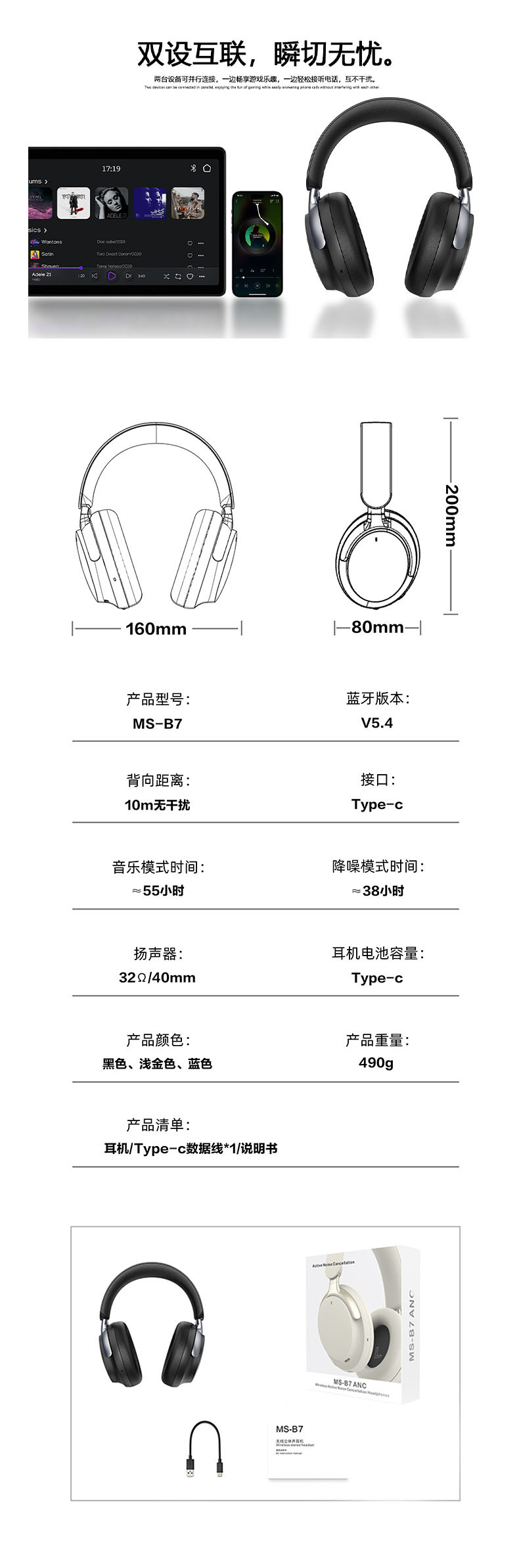 新品ANCアクティブノイズリダクションヘッドセットブルートゥースヘッドセットロング航続全カバー耳ヘッドセットワイヤレスブルートゥースヘッドセット