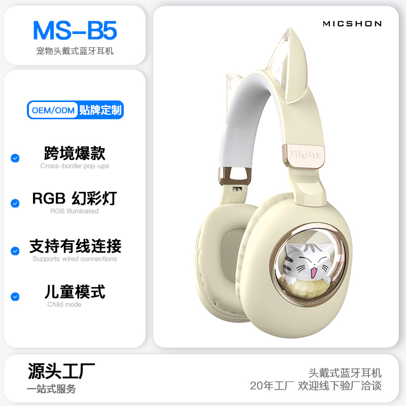 国境を越えて人気の華強北製ワイヤレスBluetoothイヤホン、キュートなヘッドホン型Bluetoothイヤホン、超長持ちバッテリー搭載ヘッドセット