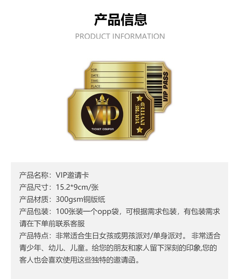 外贸爆款 20张 VIP派对邀请函双面金色 庆祝邀请卡 青少年和成人