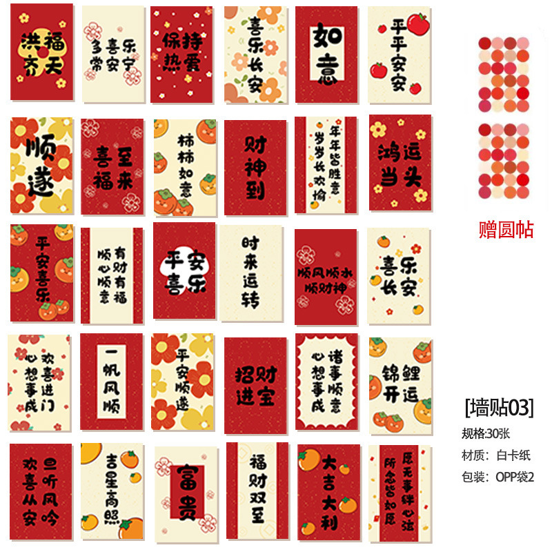 中国風平安喜楽壁面装飾お祝いカード新年旧正月配置部屋文字貼り葉書