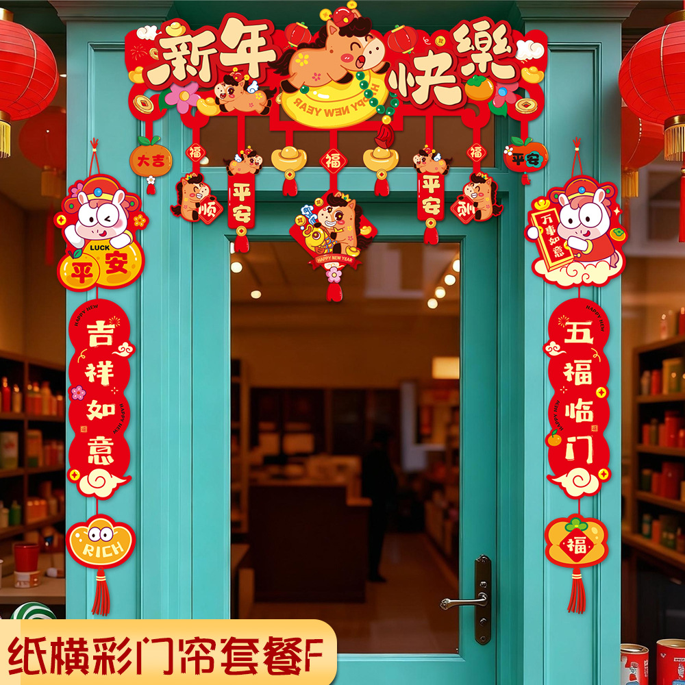 2026年春節装飾旗、吊り下げ旗、馬年彩旗、ショッピングモール、スーパーマーケット、学校、会社年次総会、飾り旗、お祝い