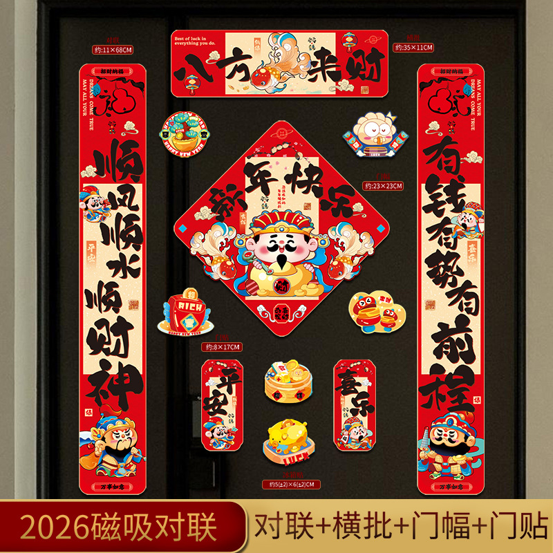 2025蛇年新年春節装飾対聯マグネットアニメ春聯家庭用創意福字新年入戸装飾