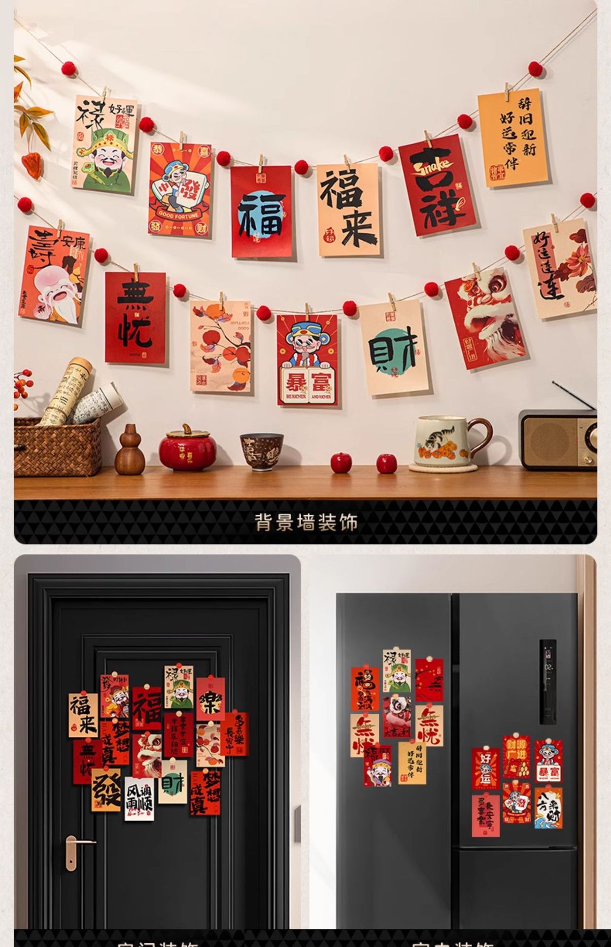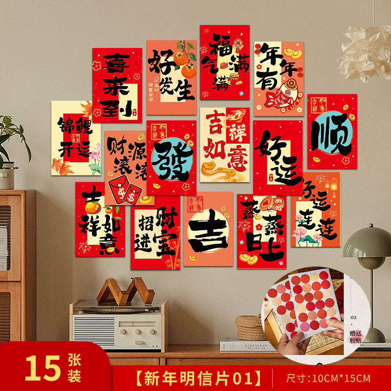 新年装飾カード雰囲気感壁貼り絵書道祝福語はがき客間寝室美化写真背景
