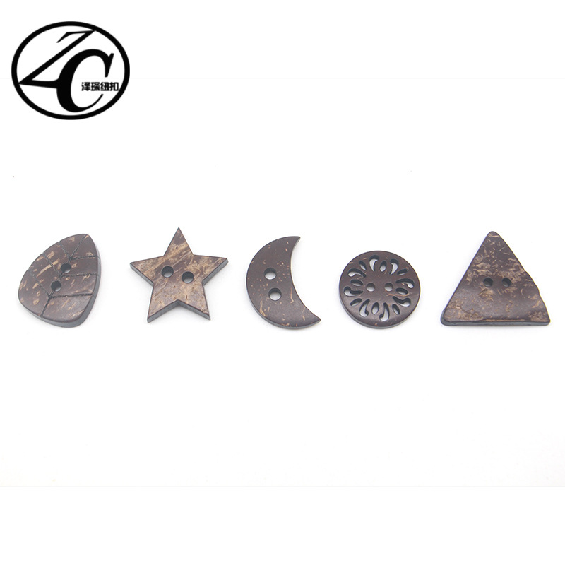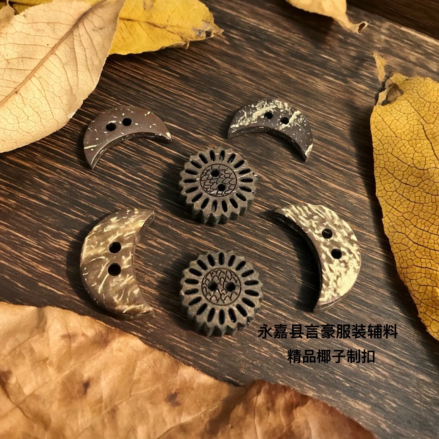 天然椰子壳纽扣异形月亮五角星三角形树叶子两眼钮扣手工diy饰品
