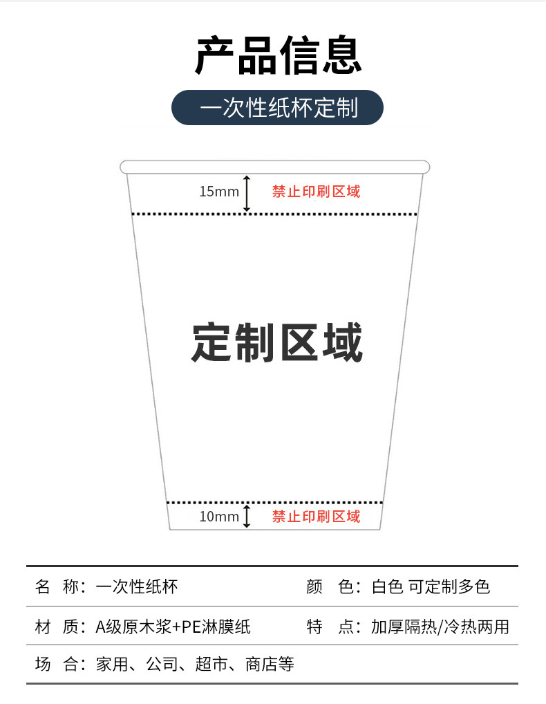 紙コップのカスタマイズ、単層、業務用、家庭用、厚手、ロゴ印刷、白、広告、オフィス、使い捨てカップ、卸売