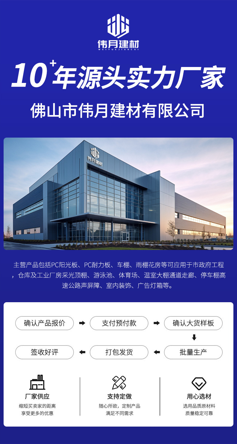 耐久板陽光板3mm雨蓬佛山源工場PC耐久板5mm高透明雨棚カスタム