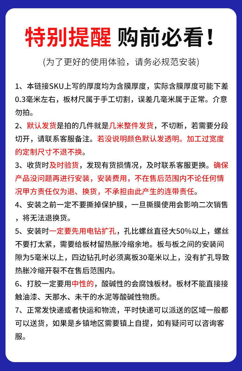 PC耐久板サンシェードボード透明湖青プラスチックボードハードボード雨棚屋根ベランダ雨よけサンバイザー落下防止物