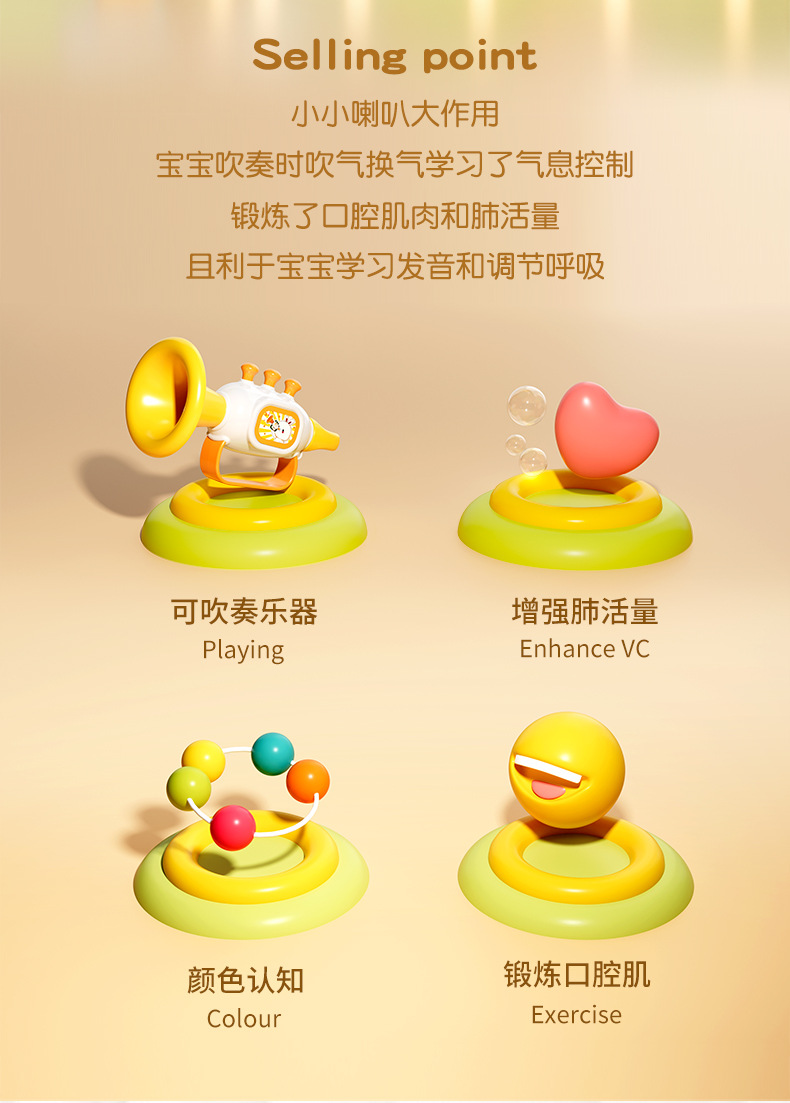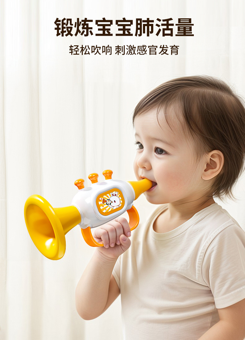 小さいラッパの子供のおもちゃの赤ちゃんは音楽を吹いて吹くことができます。