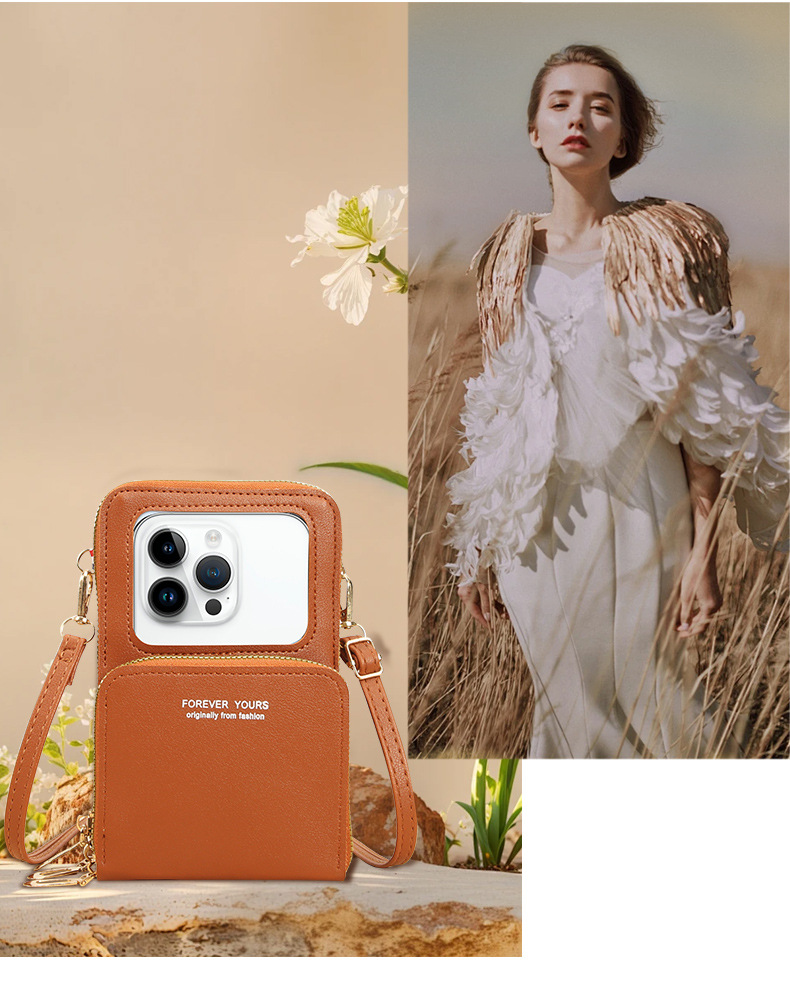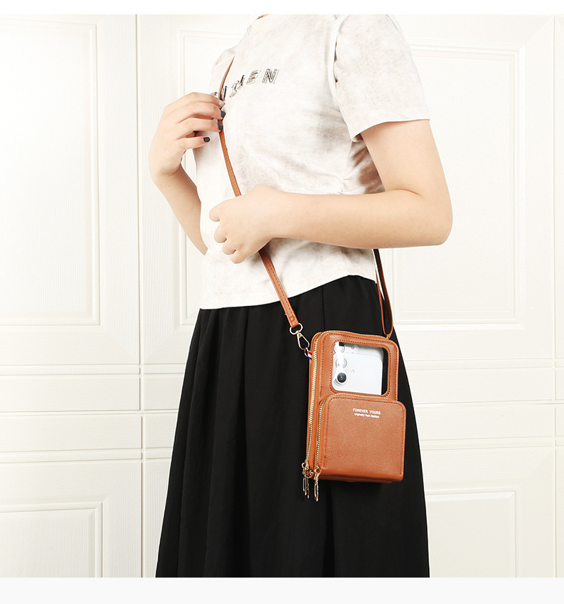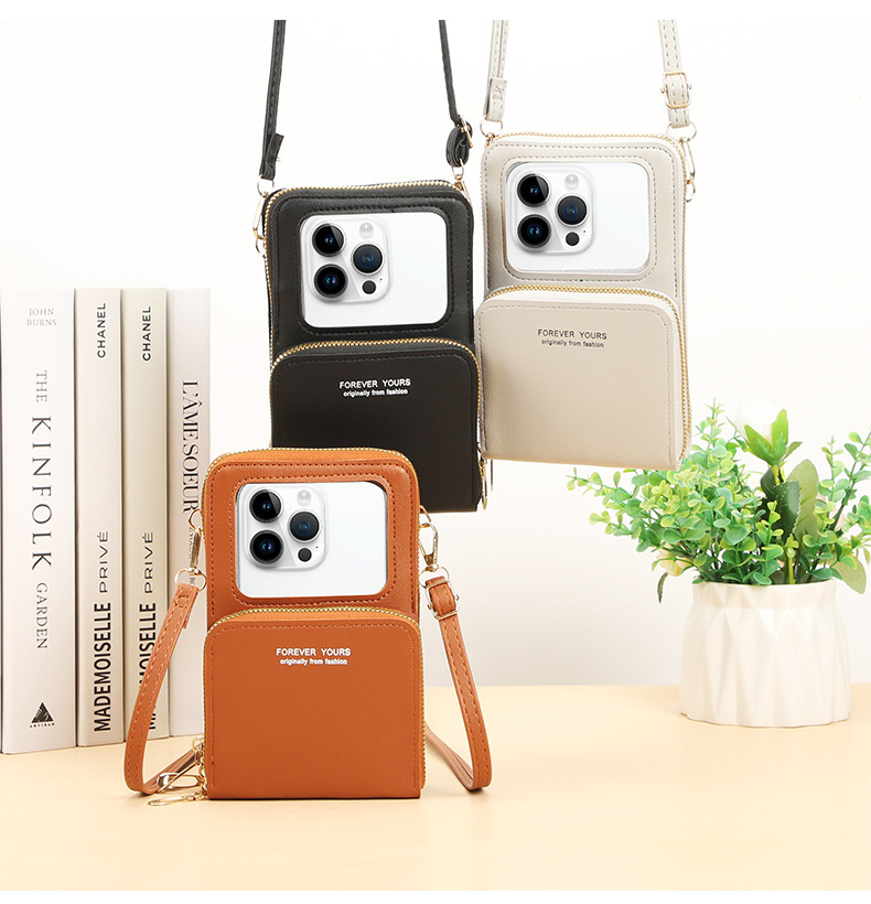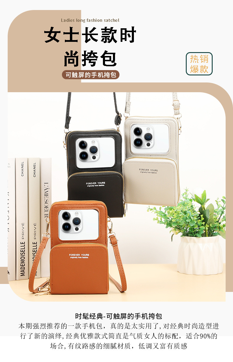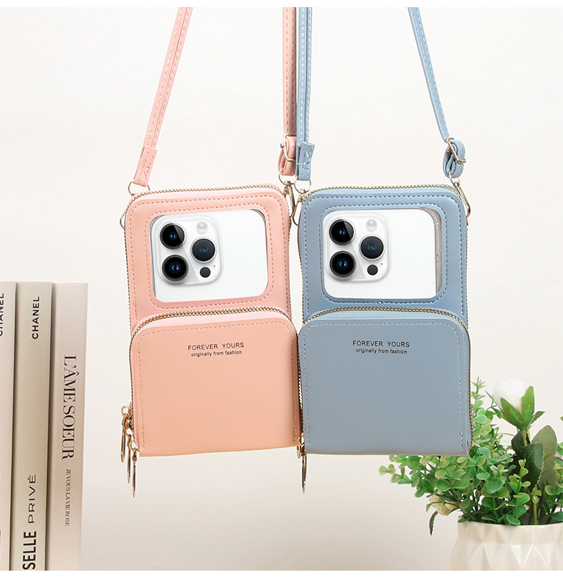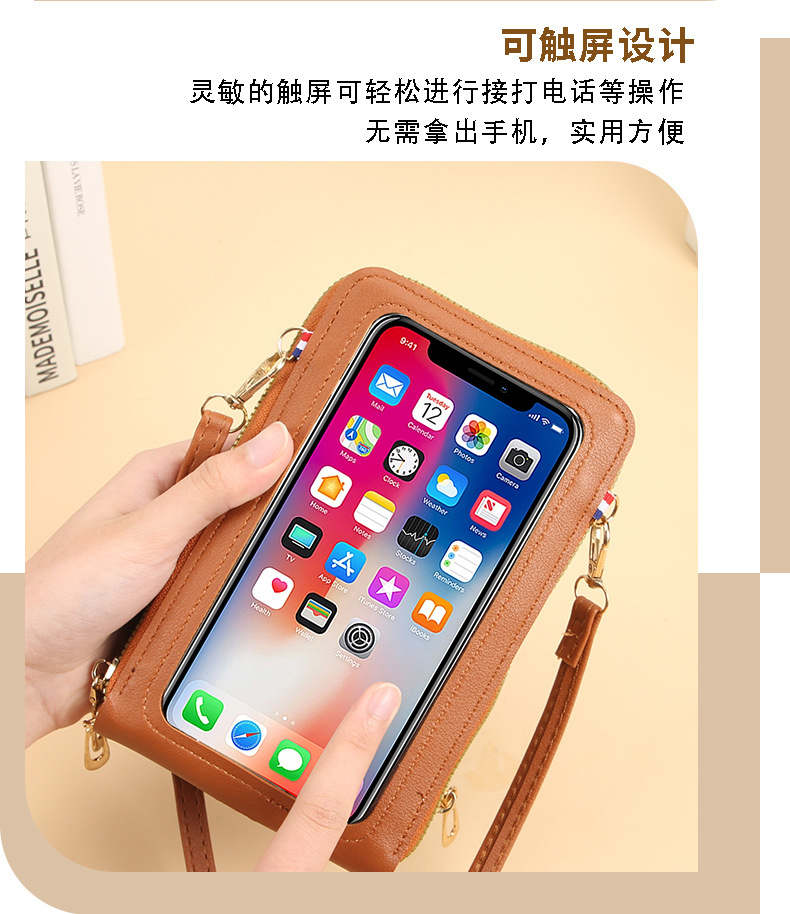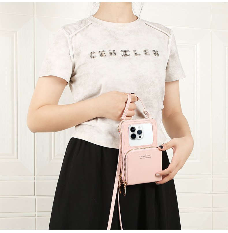 新しいタッチパネルの携帯電話バッグの女性は、携帯電話を組み合わせた携帯電話の携帯電話ケースを斜めに掛けている。