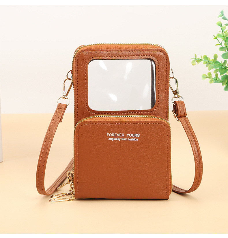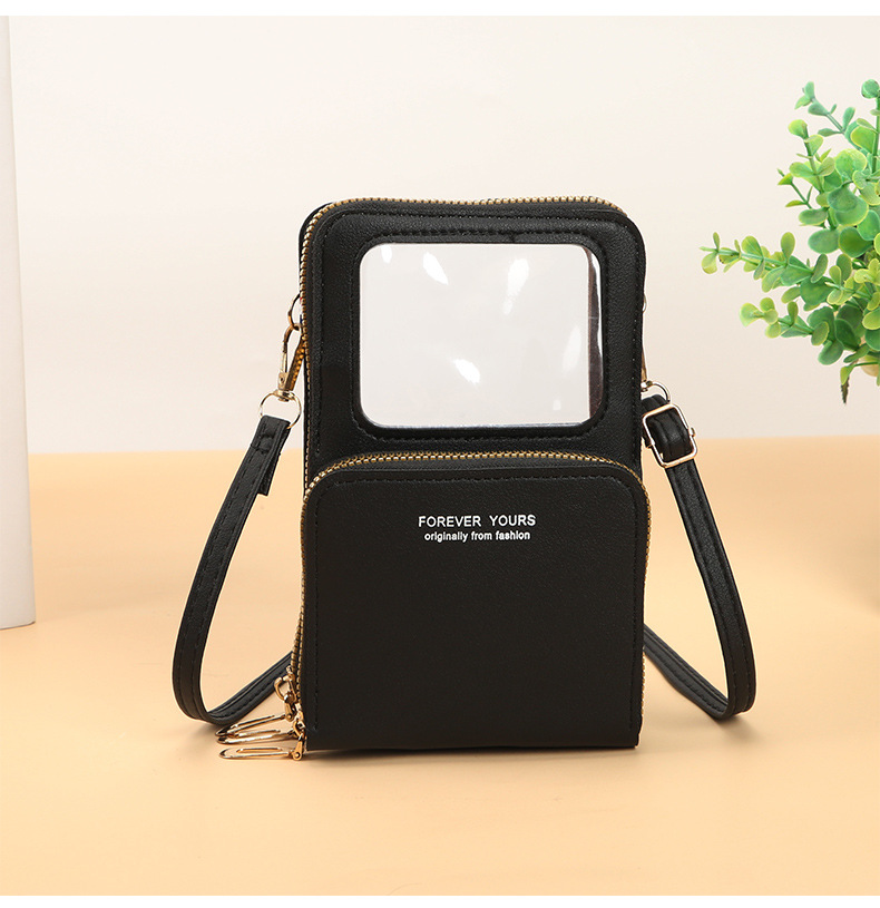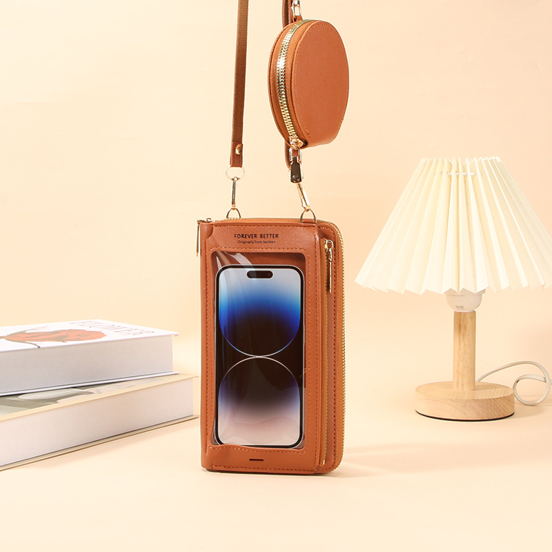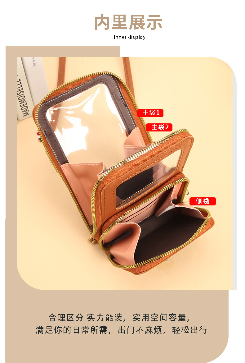 2024タッチスクリーン携帯電話バッグ女性斜めに防犯多機能シングル肩にまたがる透明ミニバッグ財布携帯電話バッグ