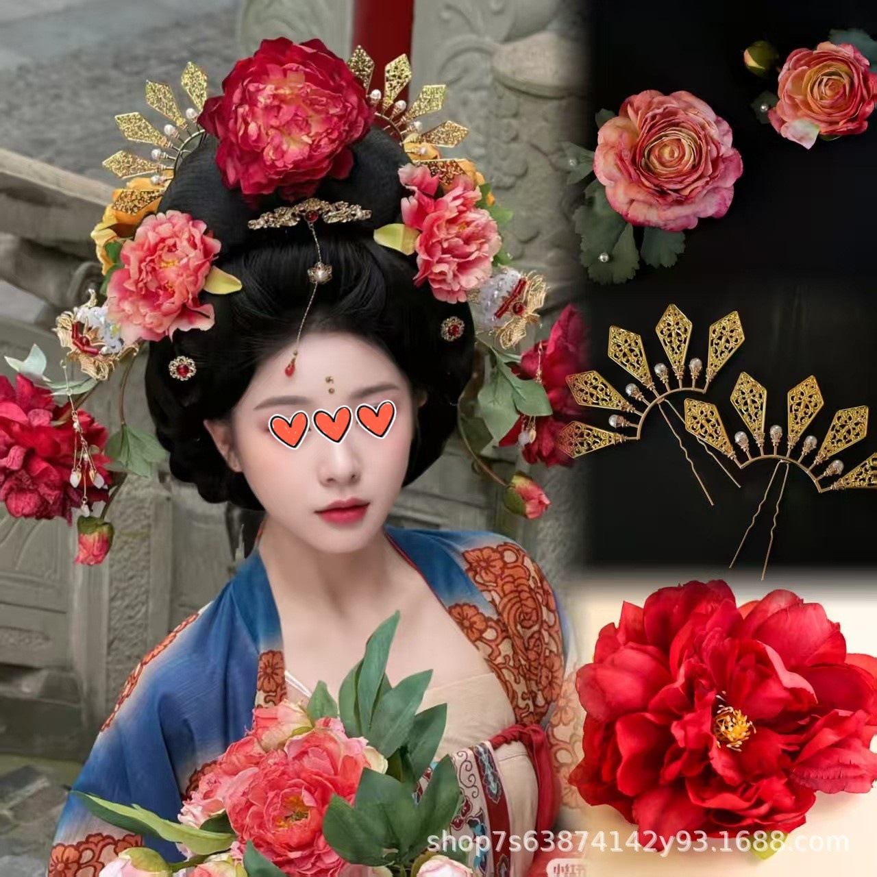 超仙清冷頭冠国風髪冠新中国式古風漢服頭飾り牡丹花仙気化粧造写真アクセサリー
