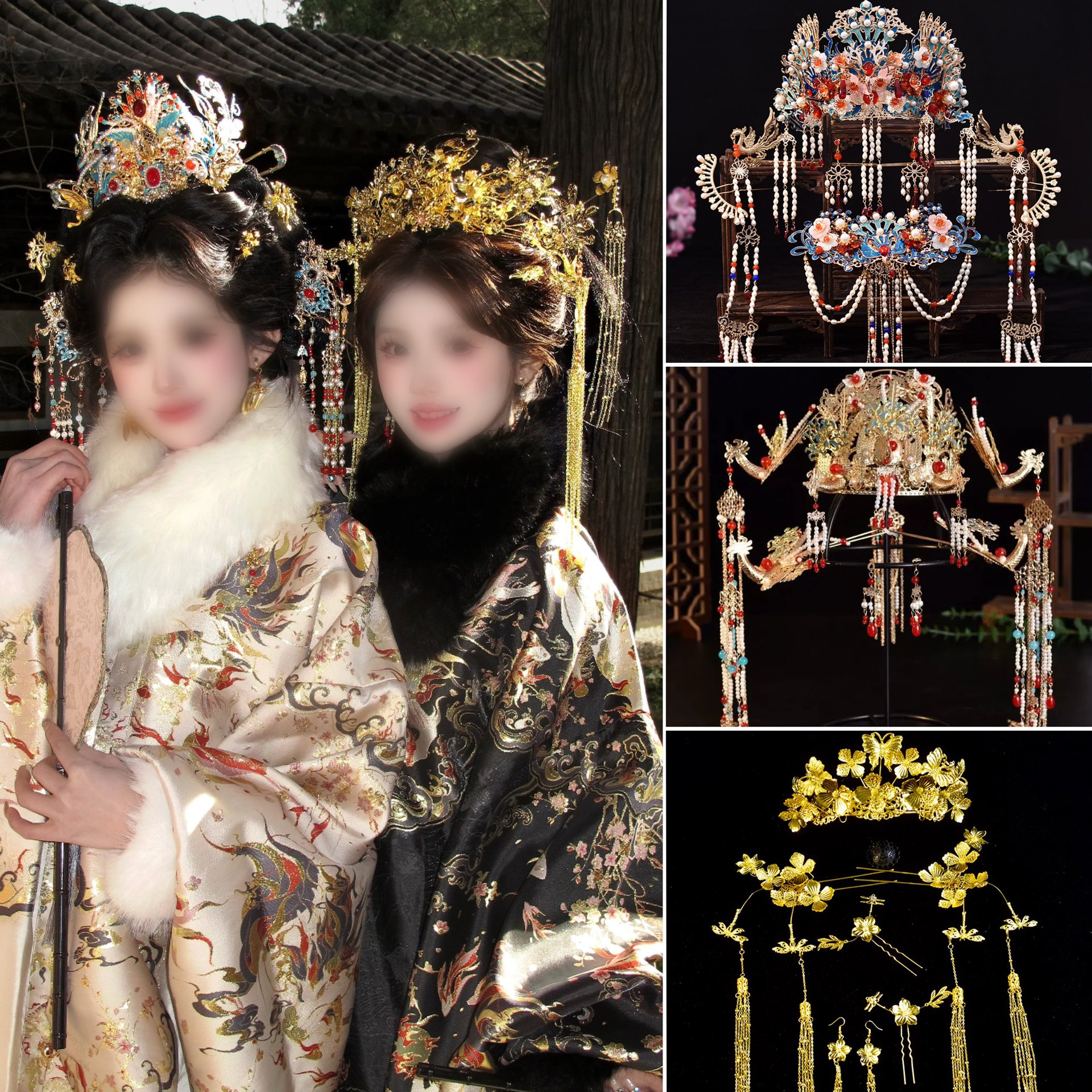 新娘婚嫁京城贵女明制秀禾服冠奢华烧蓝发冠汉服凤冠头饰中式婚礼