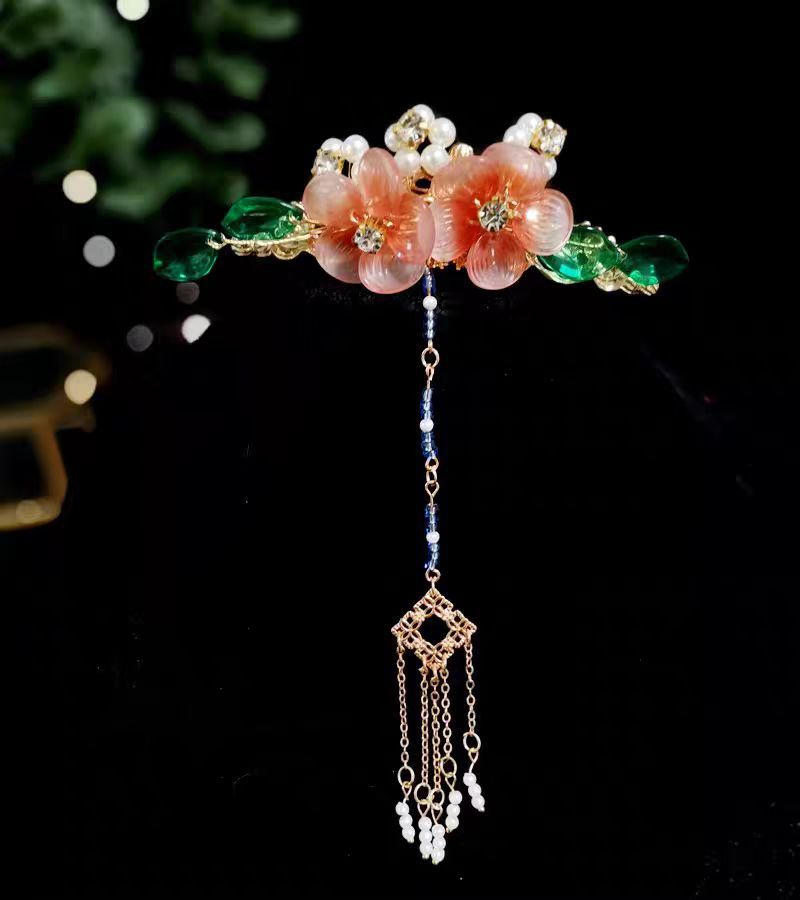 古代スタイルの漢服、唐スタイル、宋スタイルのガラスの花のヘアピン、多用途の日常の宮殿パフォーマンススタイルのヘアピンアクセサリー
