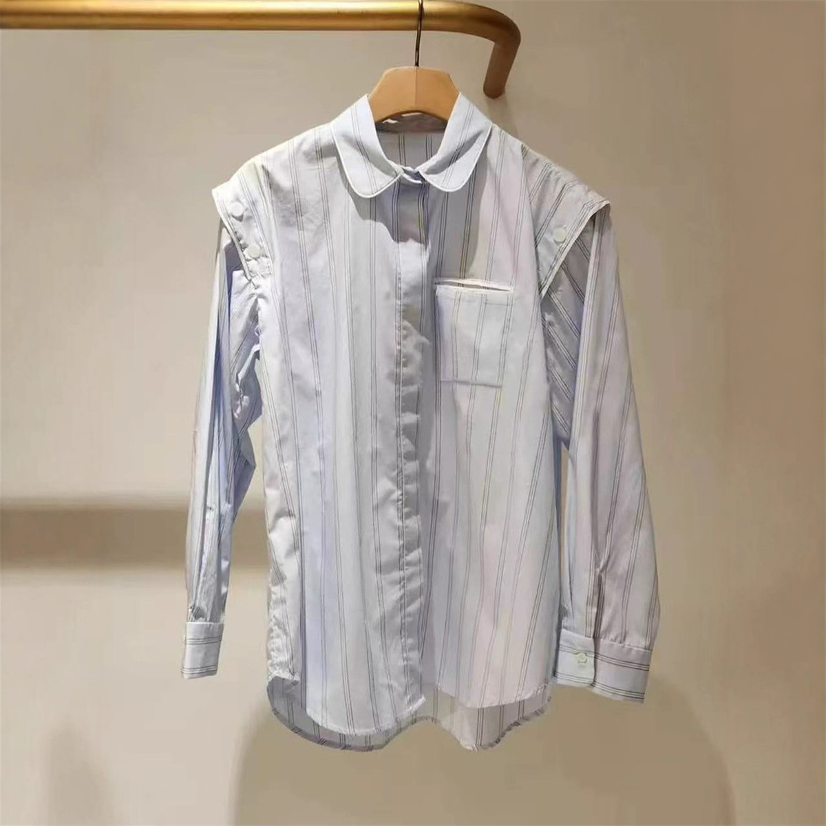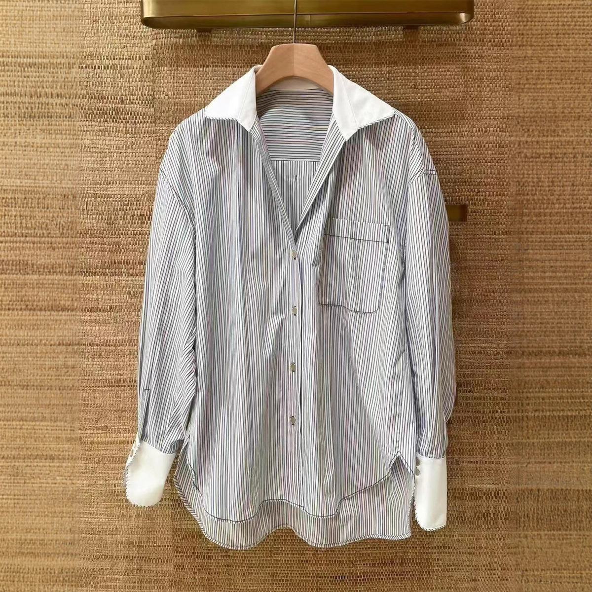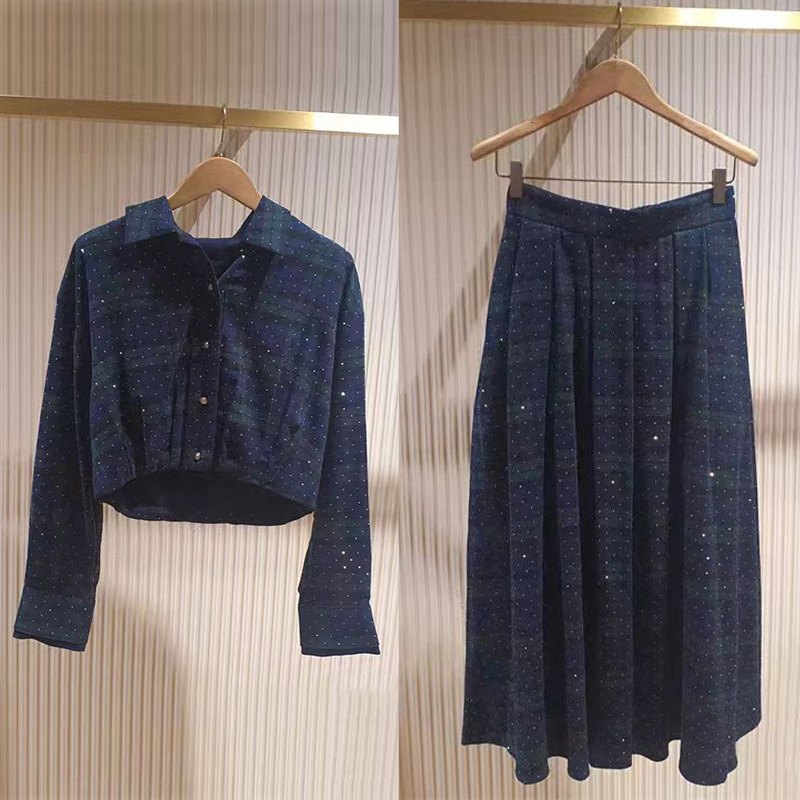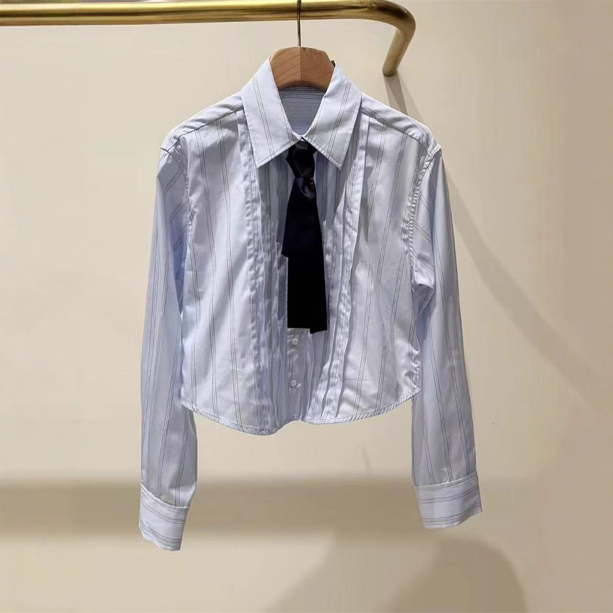 法式小众24早秋水钻装饰撞色翻领格纹衬衫宽松短款上衣