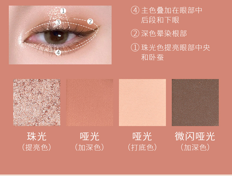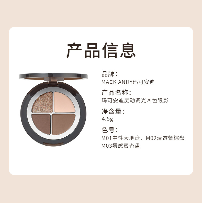 マルコアンディ霊動調光四色アイシャドー一皿多日常百合亮晶アイシャドー細閃四色