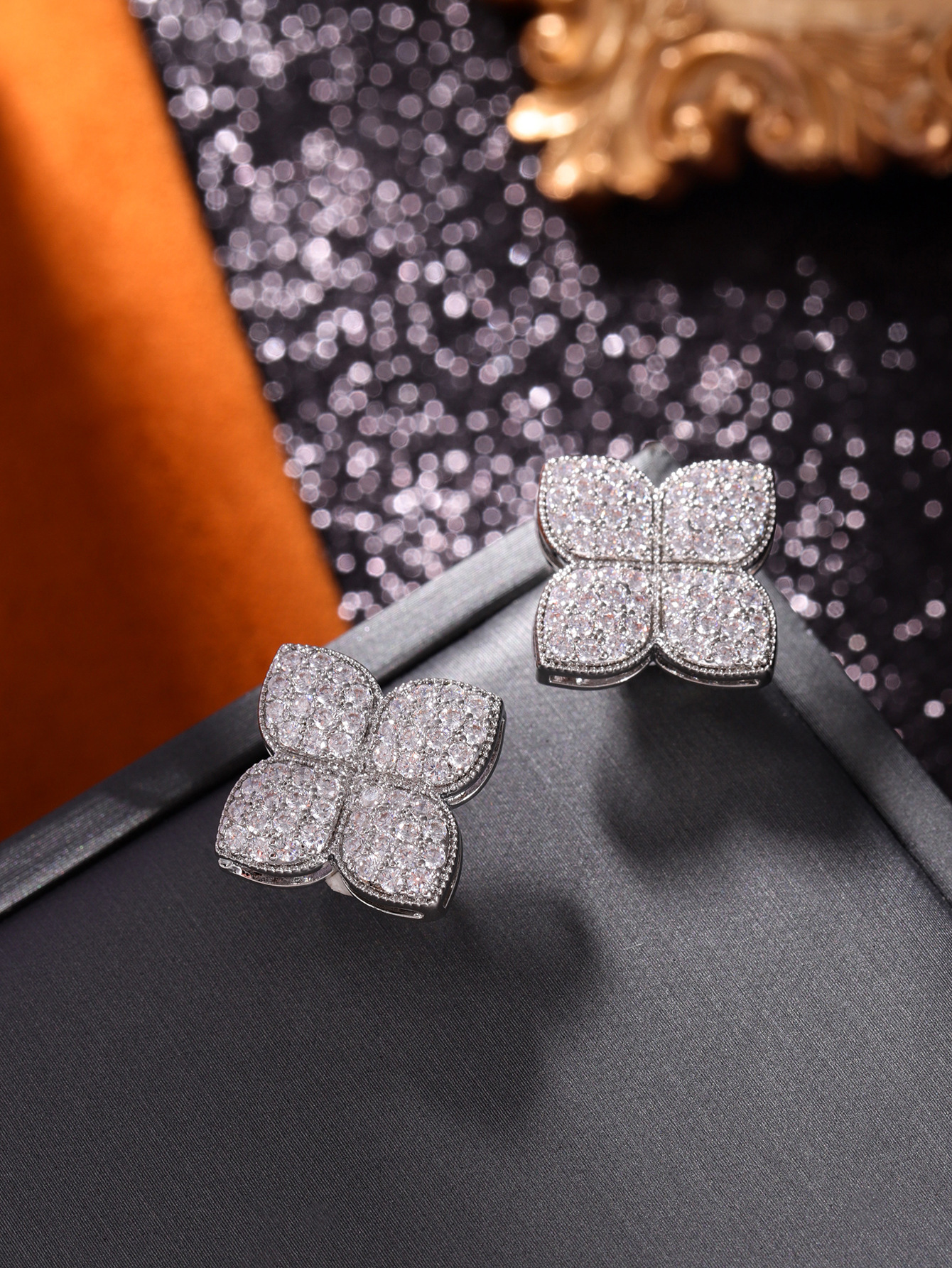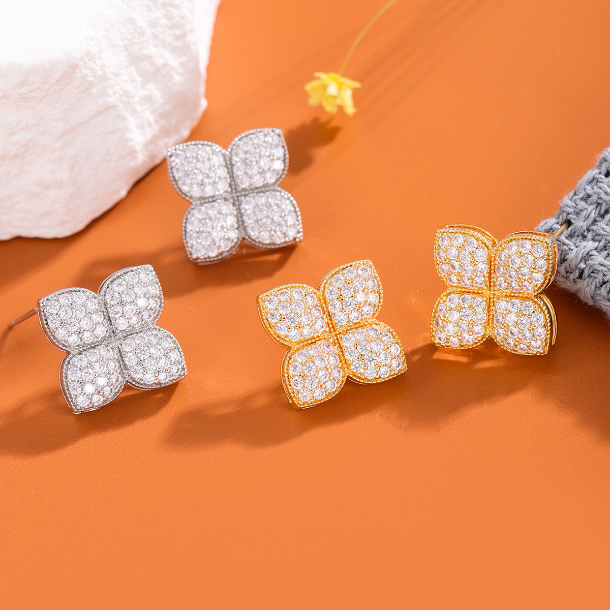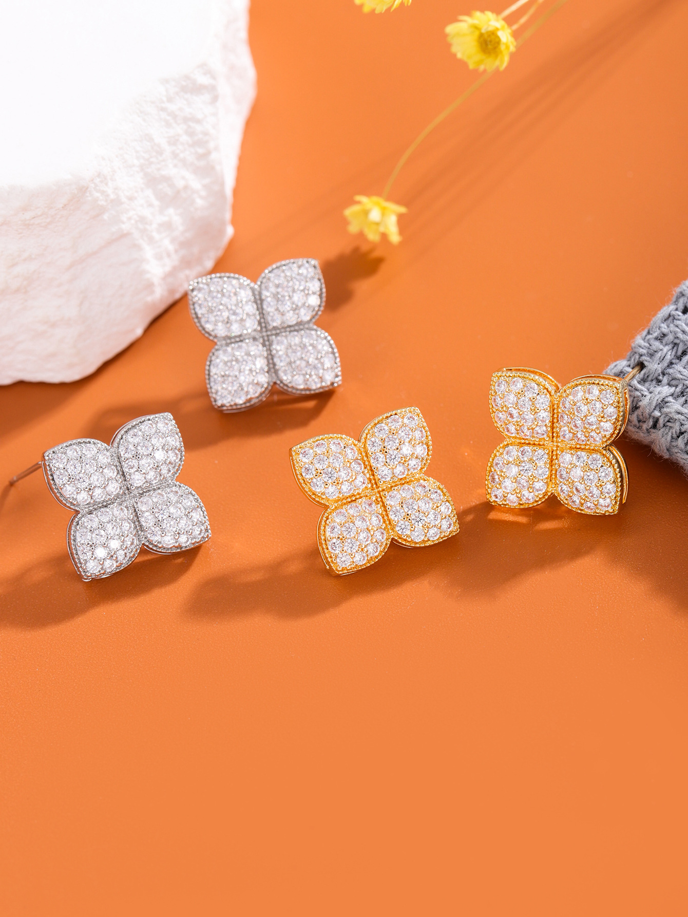 国境を越えて流行している潮女の古典的な百合宝飾品はジルコン925銀針が色を落とさない女性四葉草ピアス