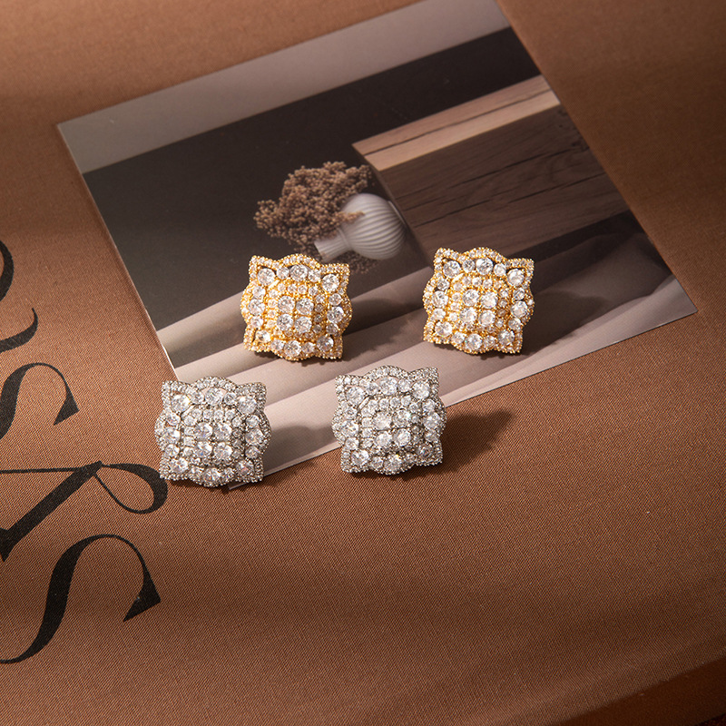 新款热销铜镶锆石耳环女简约轻奢图案设计ins个性小众优雅设计耳