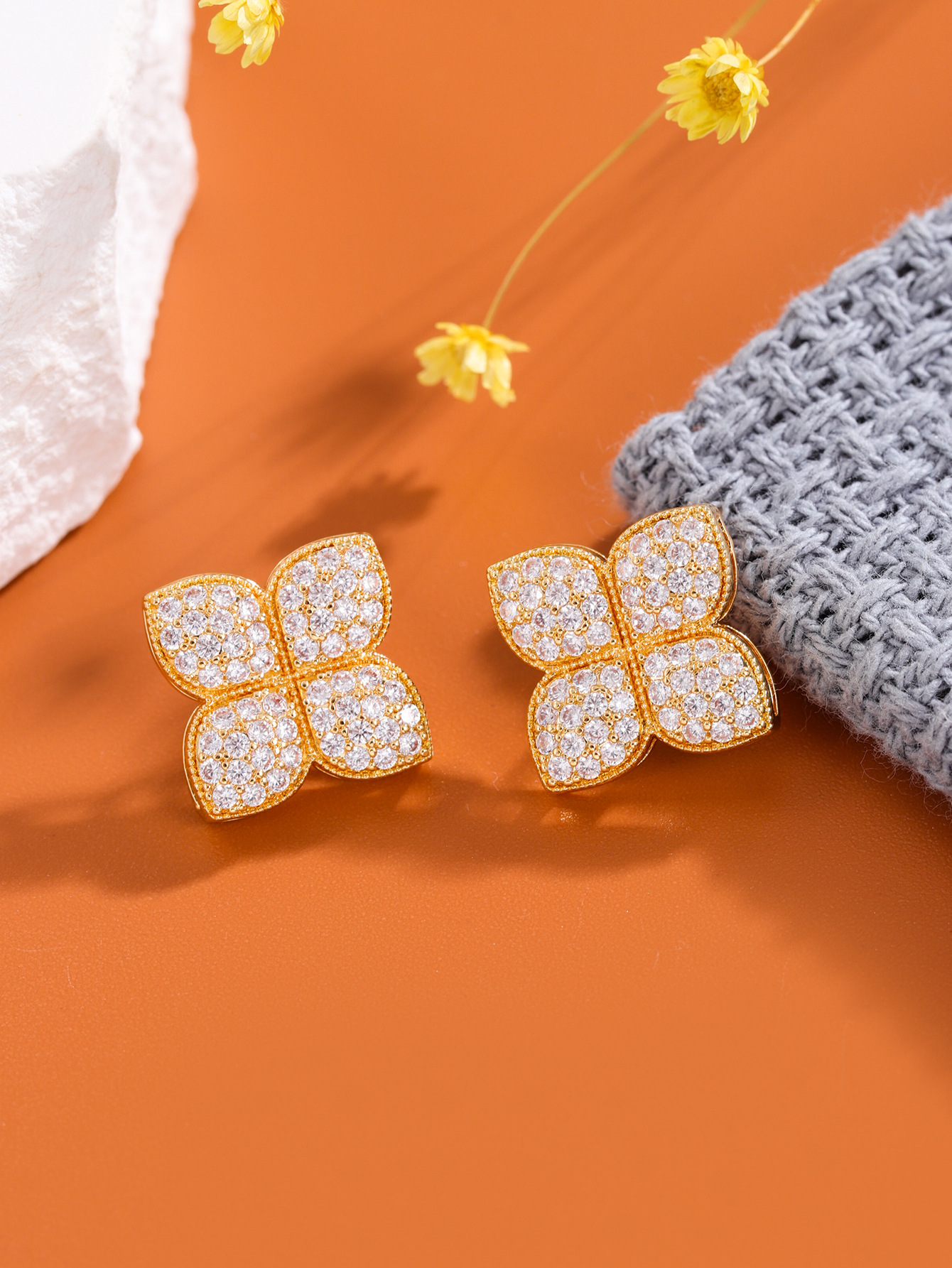 铜镶锆石日韩时尚精致气质锆石花朵耳环轻奢高级感个性网红款耳环