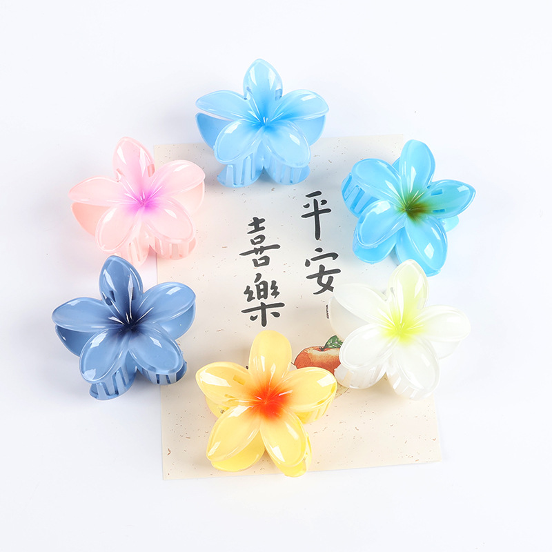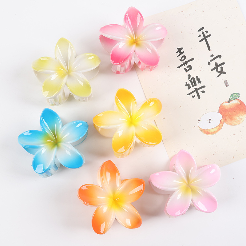 跨境热销鸡蛋花抓夹大号连体花朵发夹后脑勺套装鲨鱼夹亚马逊发饰