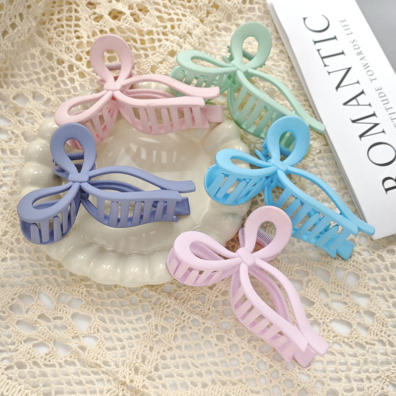 シンプルなマカロンカラーのリボンクリップ、高級後頭部ヘアクリップ、ヘアアクセサリー、韓国風大型サメクリップ、女性用