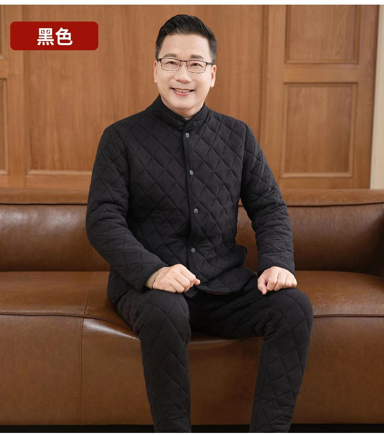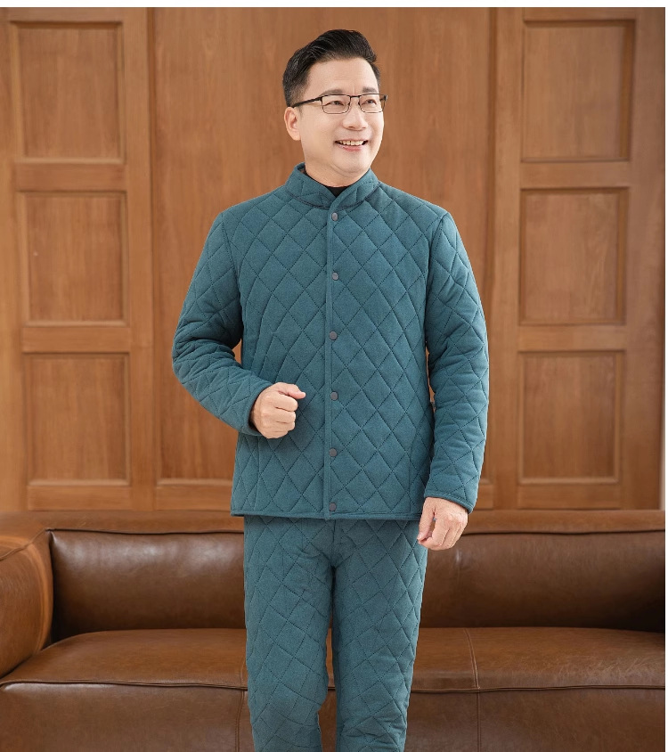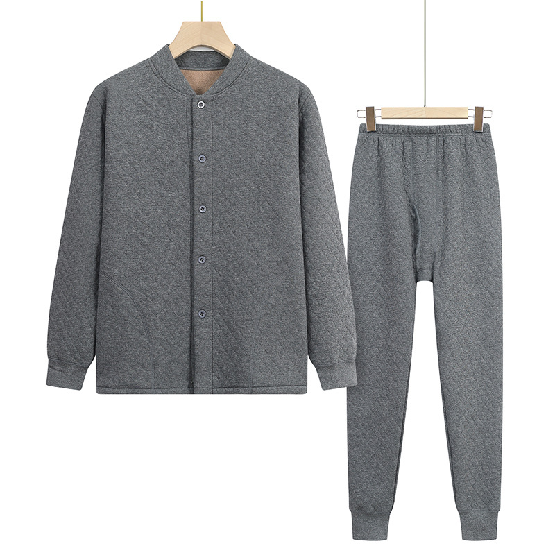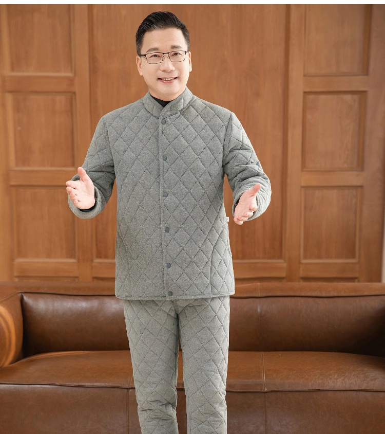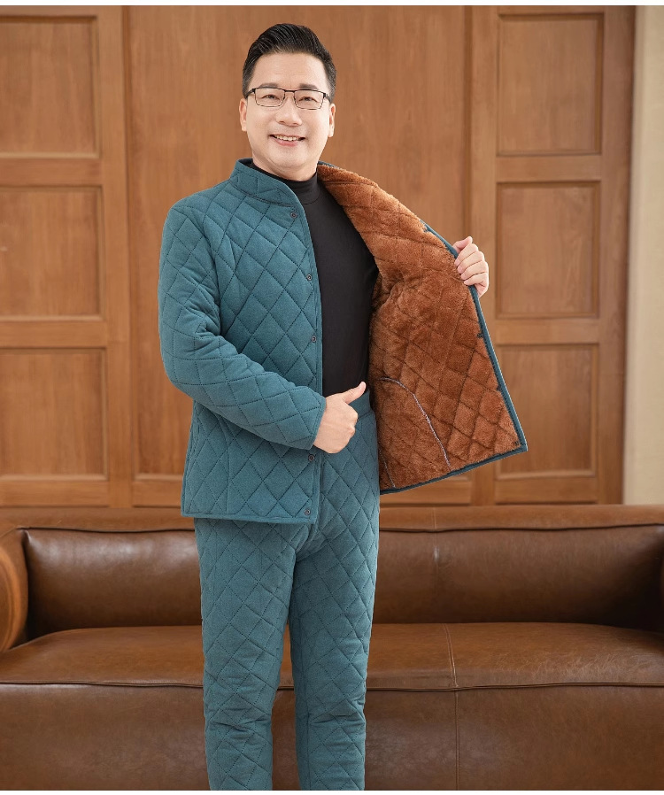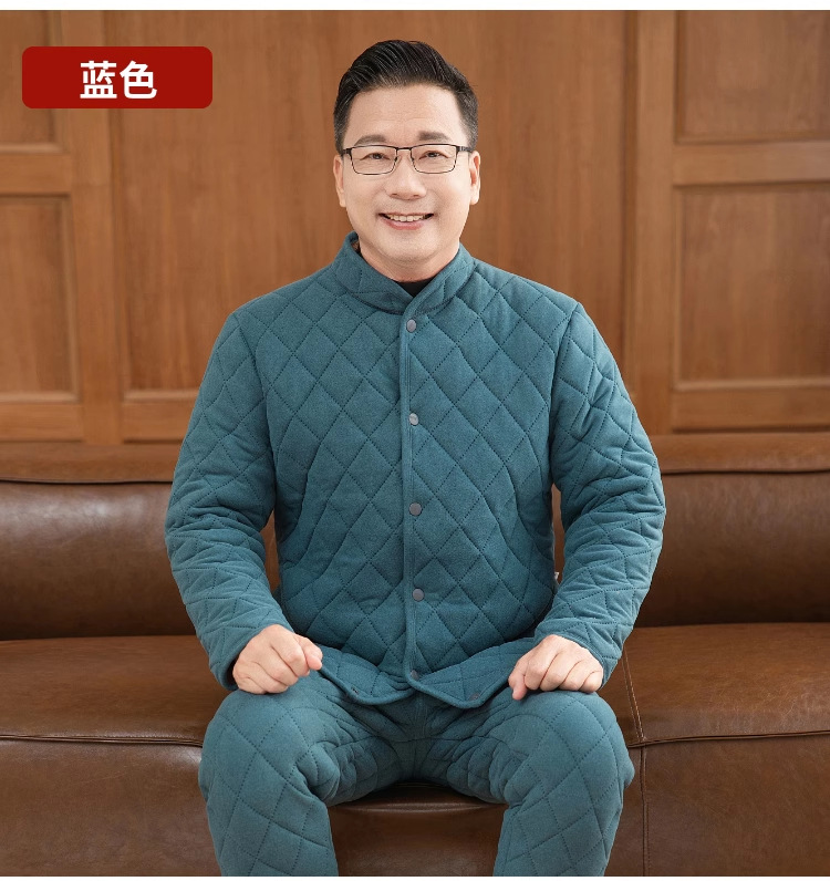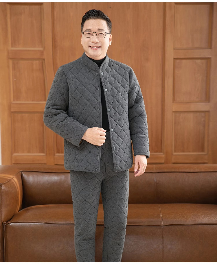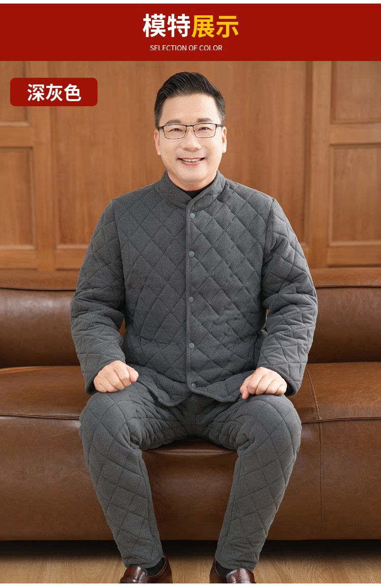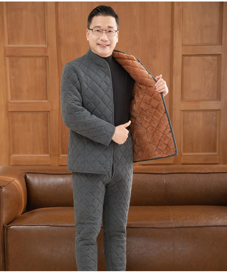 中高年の保温下着セット男性の厚いベルベットのお父さんは冬のカーディガンの空気綿秋衣秋ズボンを着ています