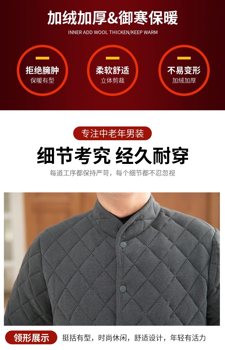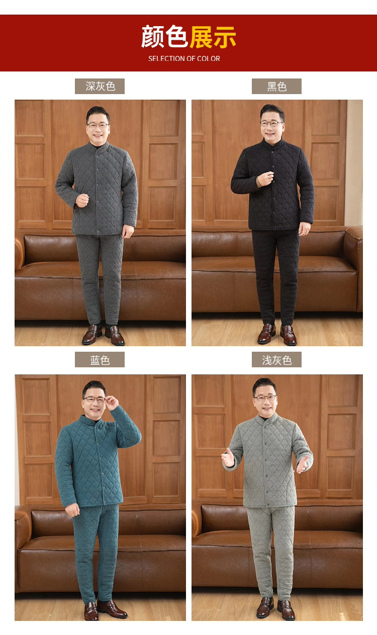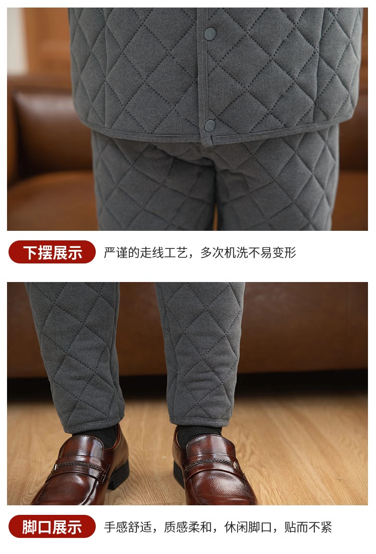 中老年男冬季加绒护膝防寒开襟保暖套装爸爸高腰加厚开衫棉衣棉裤