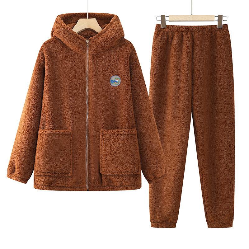 フランネルのパジャマ冬の中年の女性は、漫画の学生のサンゴのベルベットの家庭服の帽子セットを厚くした