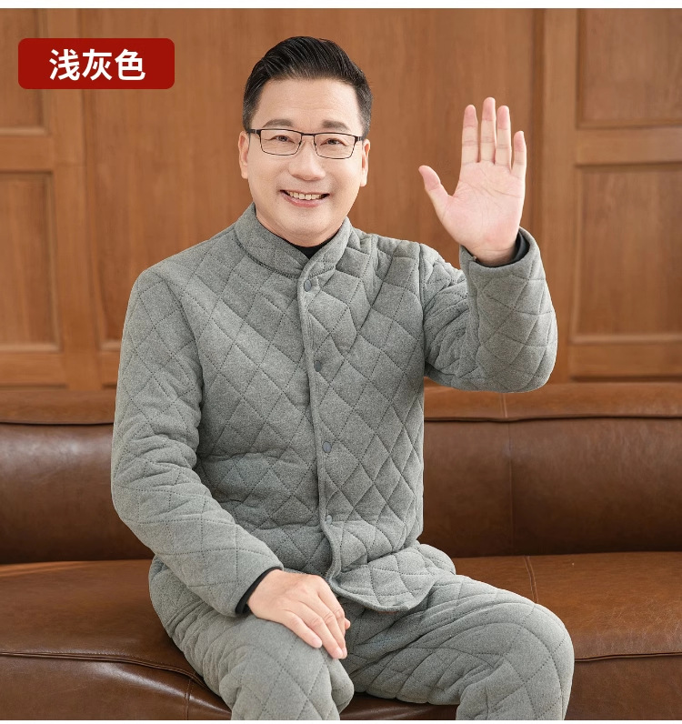 中高年純綿男性保温服厚手のベルベットの軽やかな老人カーディガンの襟の家庭服セット冬