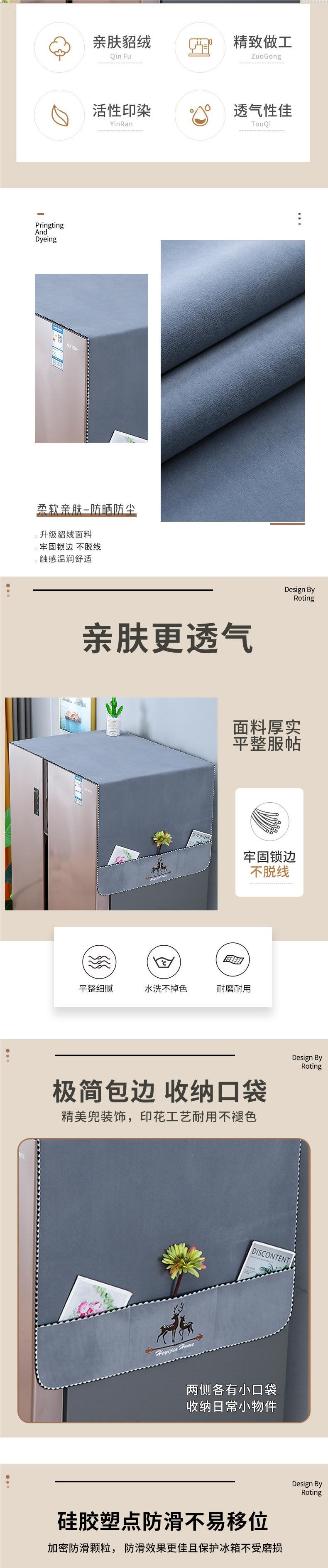 冷蔵庫トップカバー布防塵カバー家庭用シングルダブルドア防塵カバー収納洗濯機カバー保護滑り止め