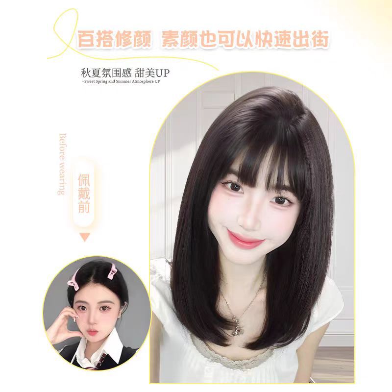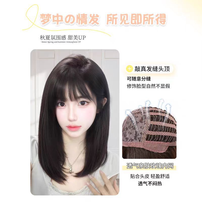 许昌假发中长发齐肩锁骨发空气刘海学生短发呆萌可爱仿真发全头套