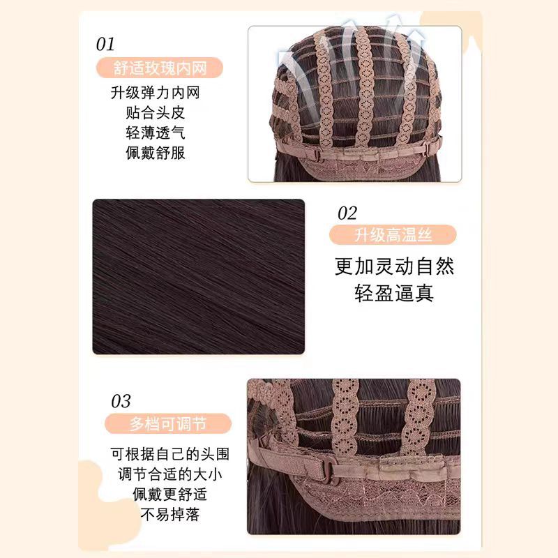 程銘かつら女冷茶色ネット赤夏空気前髪波頭2023新型自然全頭セット式