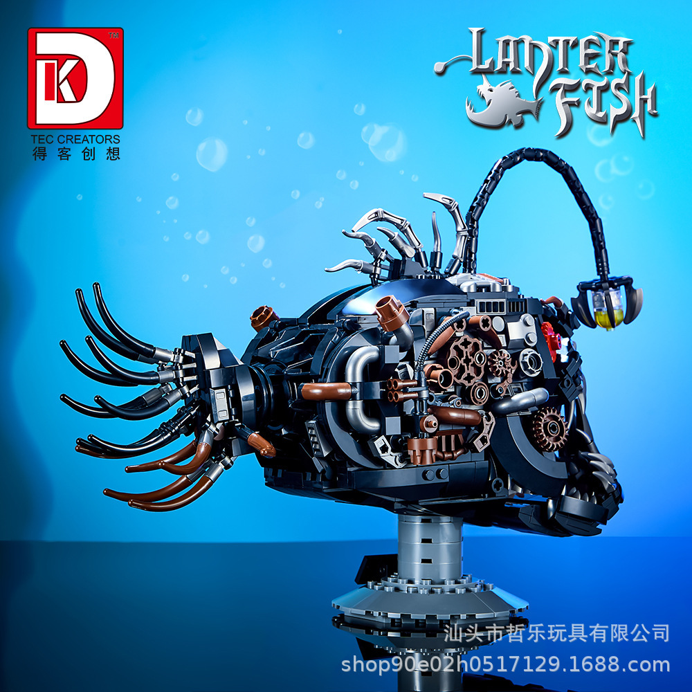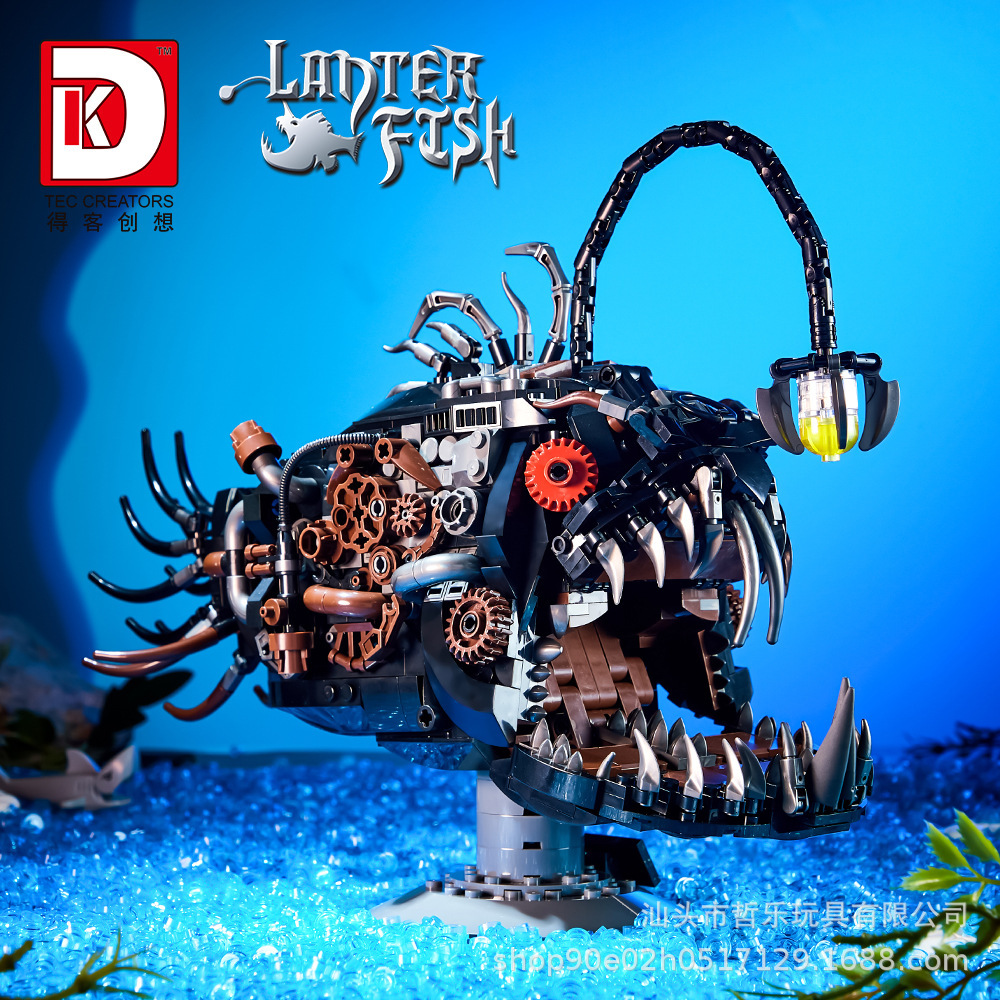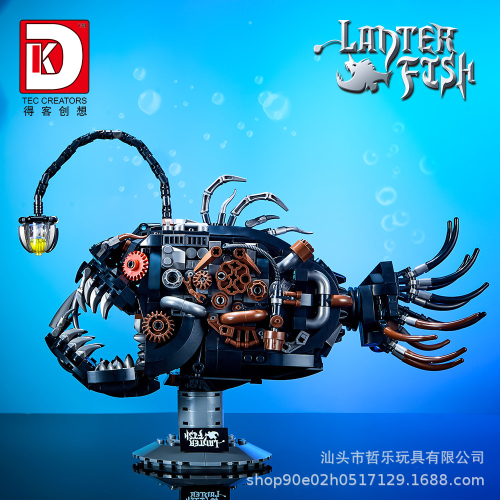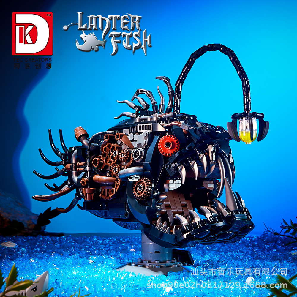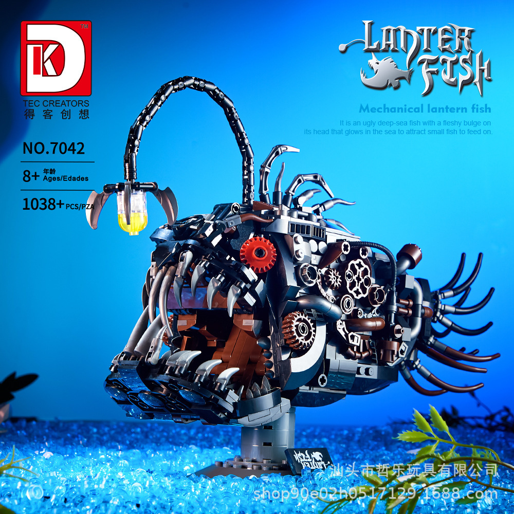 得客7042机械灯笼鱼海洋动物高难度积木拼装益智跨境模型摆件玩具