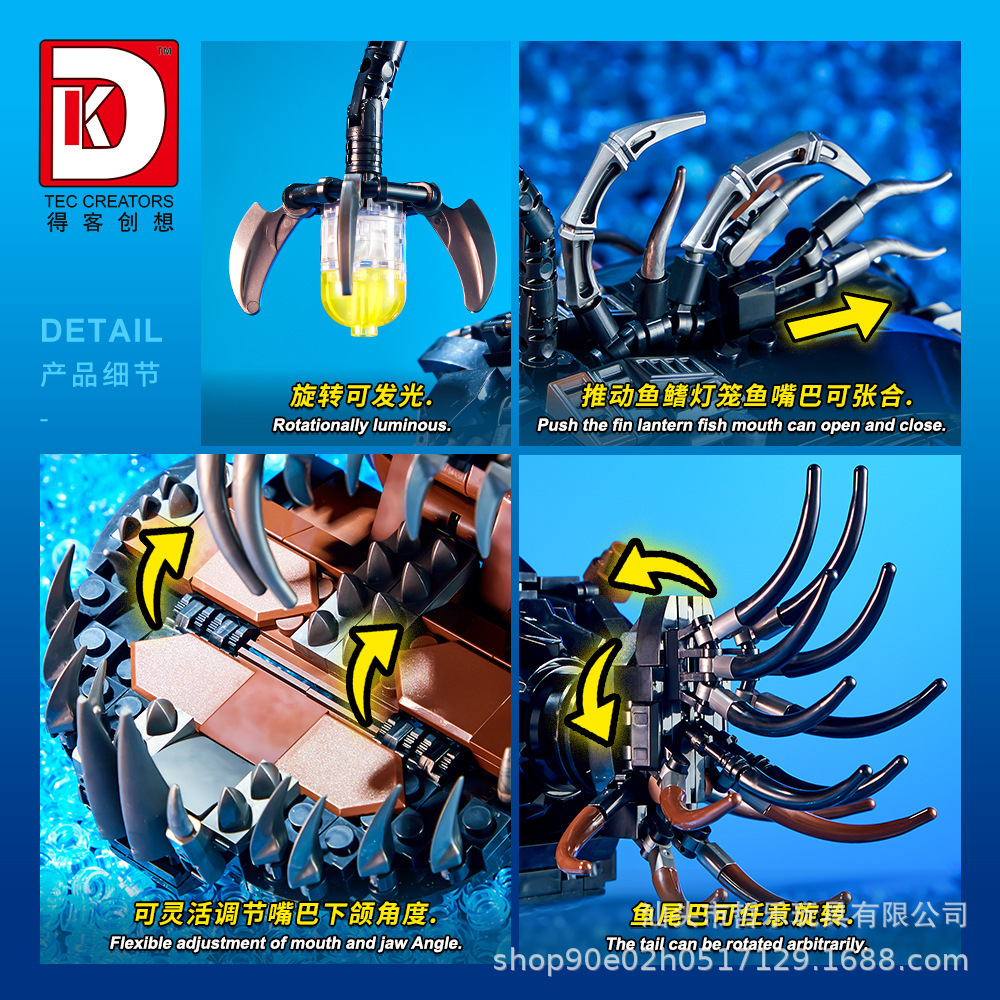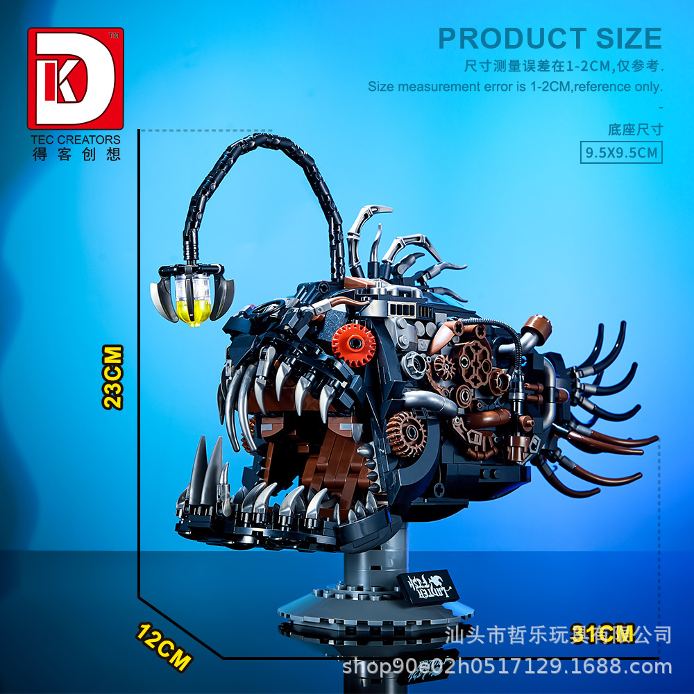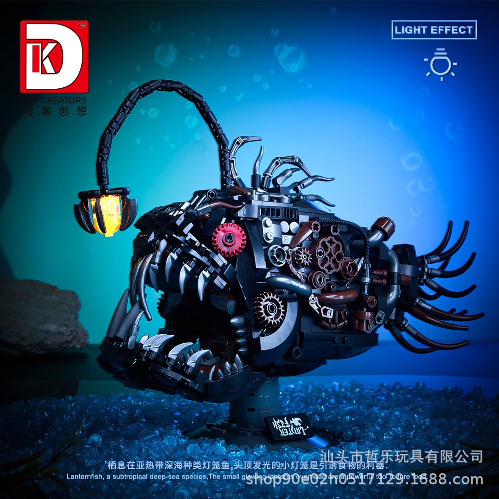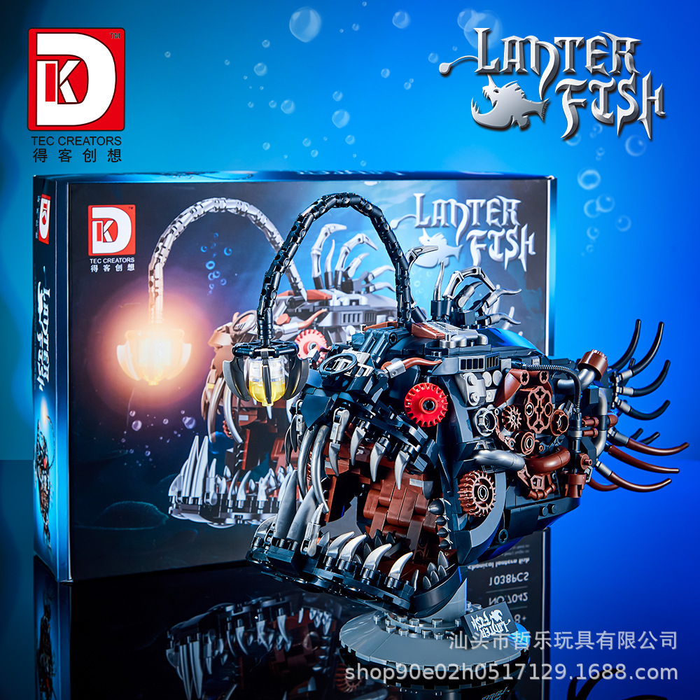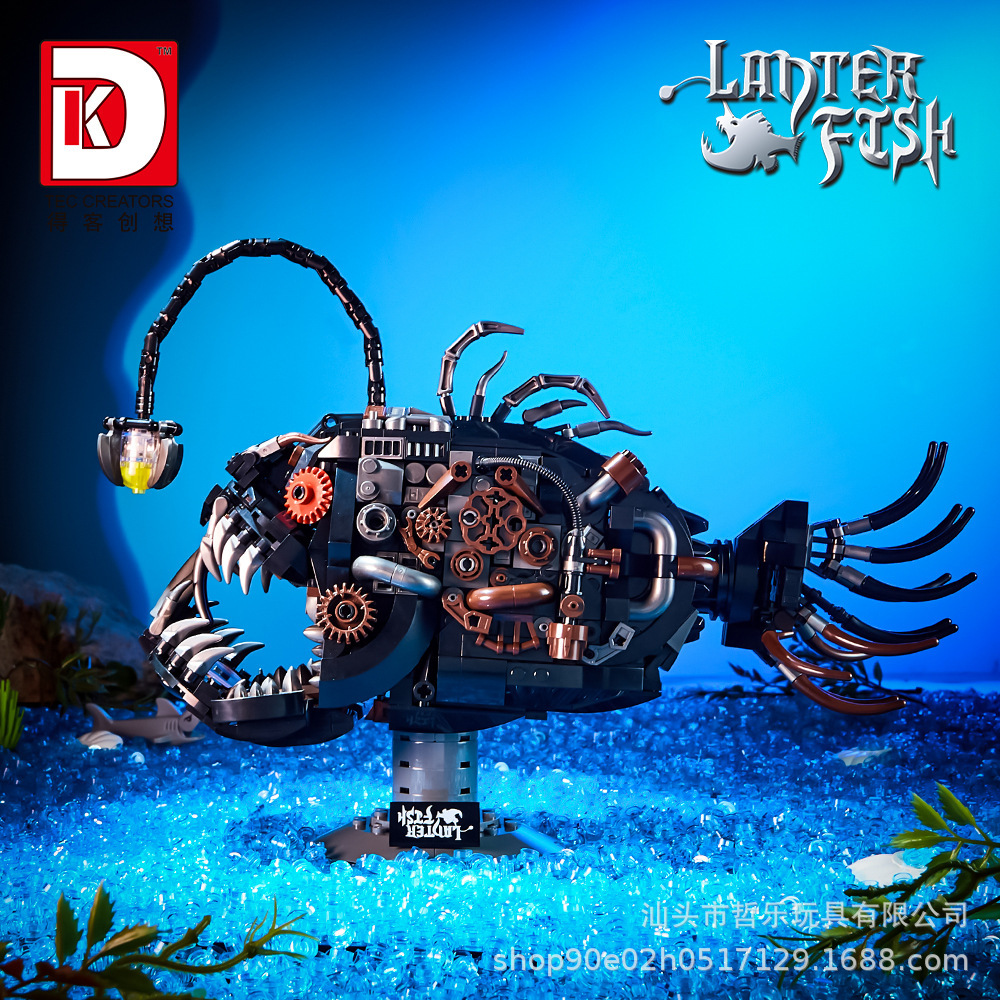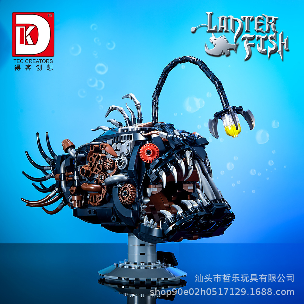 得客7042机械灯笼鱼海洋动物高难度积木拼装益智跨境模型摆件玩具