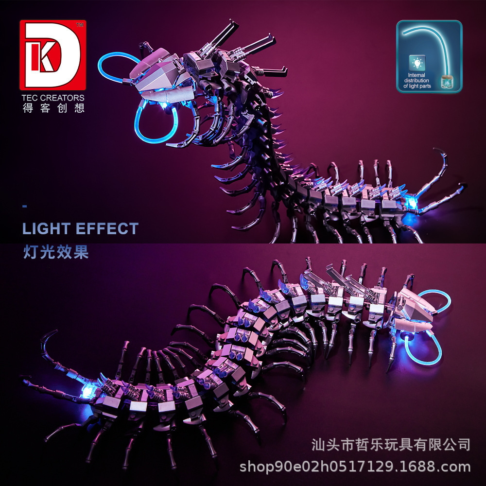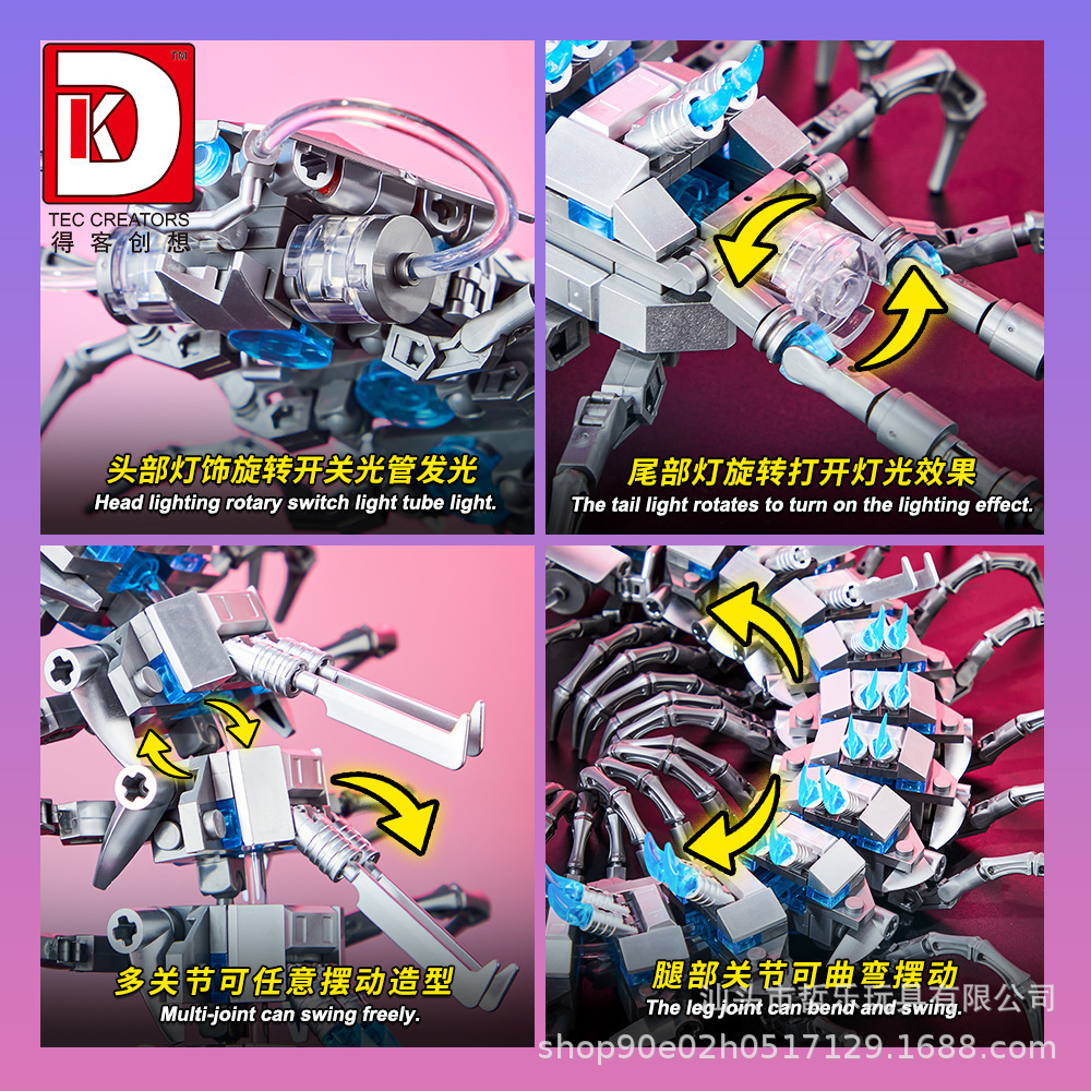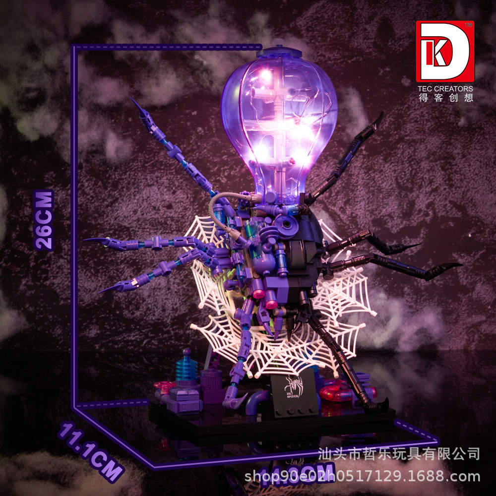 国境を越えた半機械クモムカデ灯籠魚照明版益智科教小粒積み木の組み合わせプレゼント卸売り