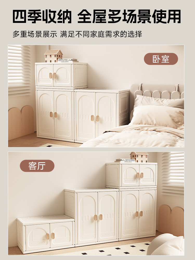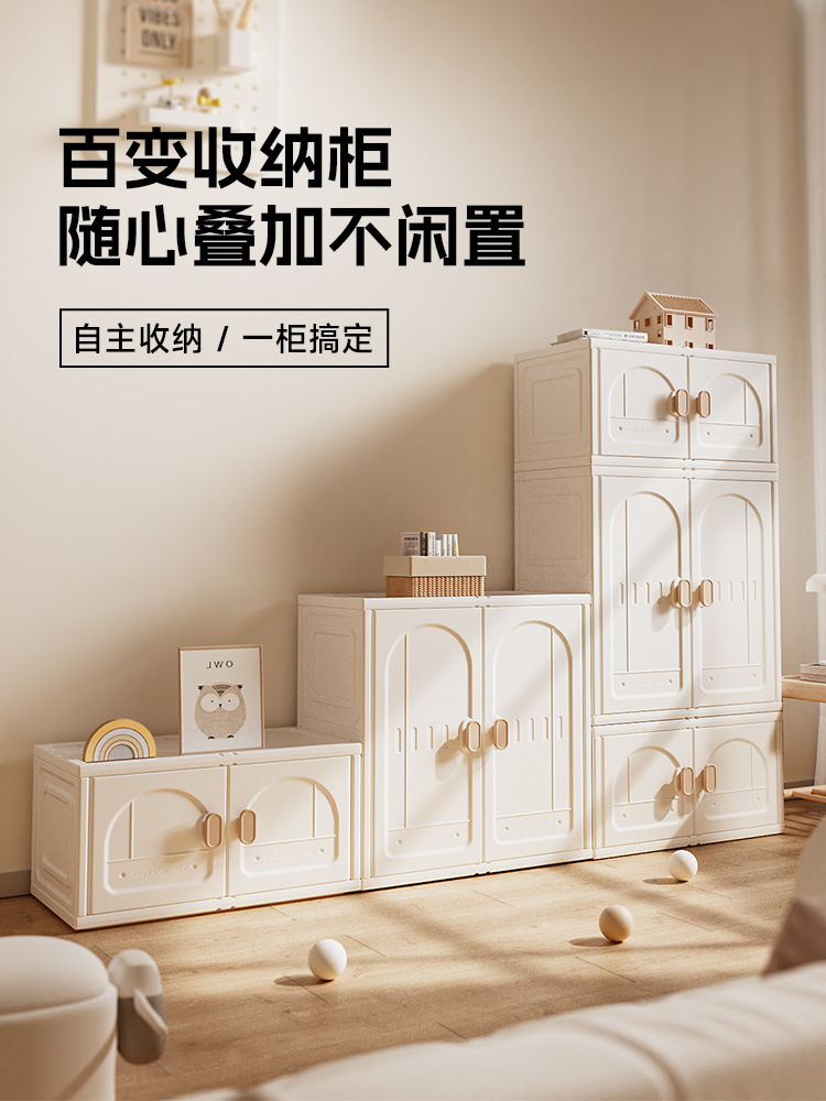 Yeyaも雅双開門赤ちゃん漫画クローゼット家庭用プラスチック厚手シンプル収納整理キャビネット