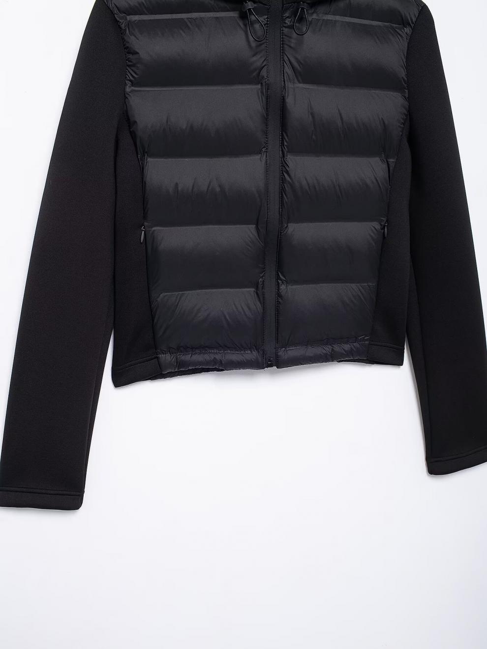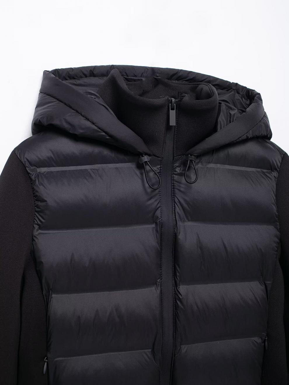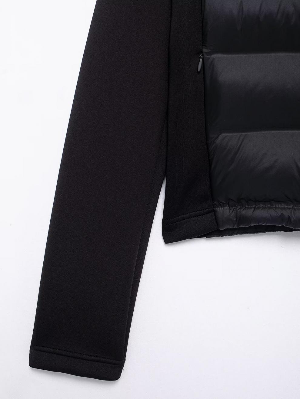 ZA 秋季新款 女装 欧美风法式设计时尚百搭黑色拼接棉服夹克外套