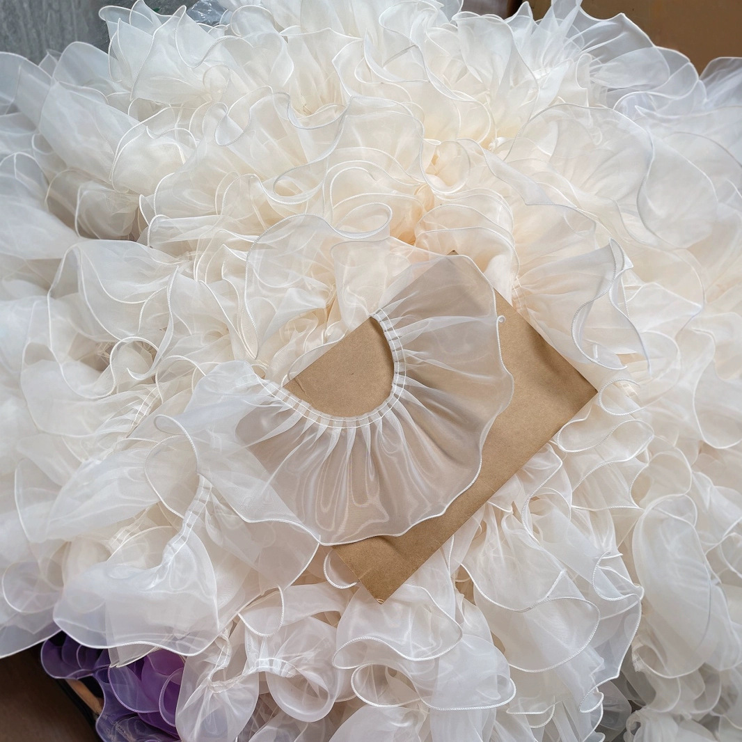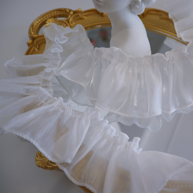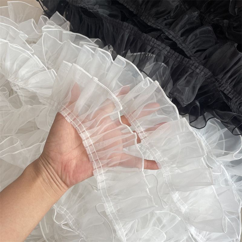 材质为欧根纱,宽度10cm左右,如果买的很长中间会有少许接头